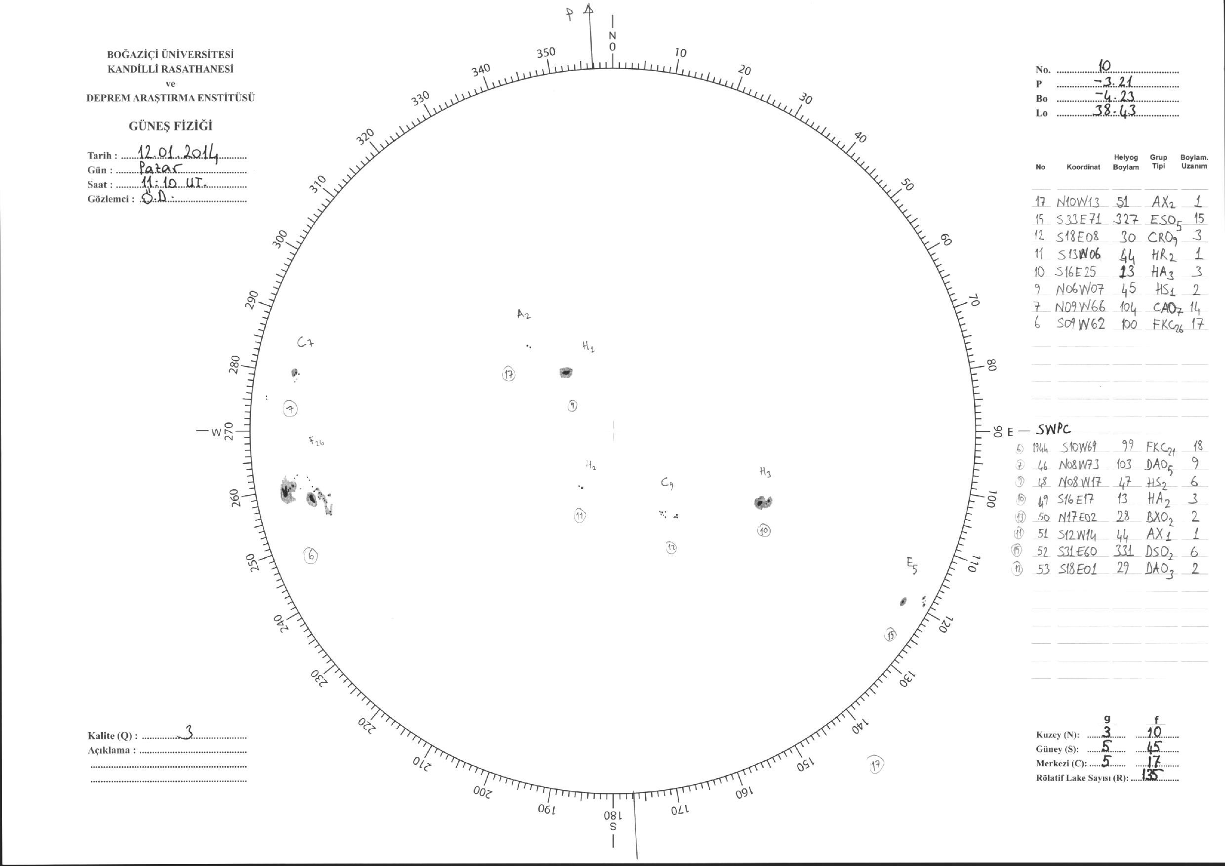 Güneş Lekesi Çizimi - 12.01.2014