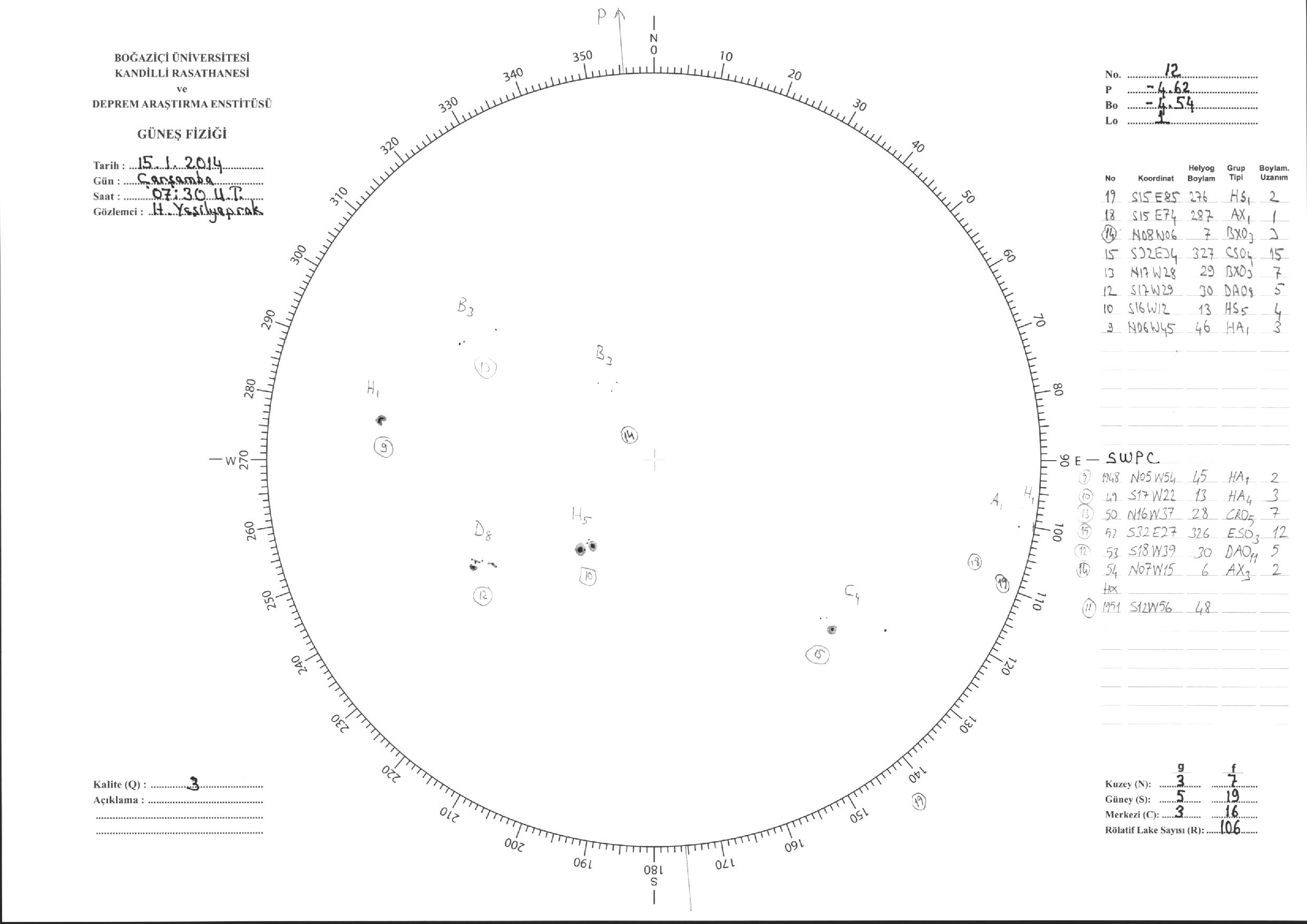 Güneş Lekesi Çizimi - 15.01.2014