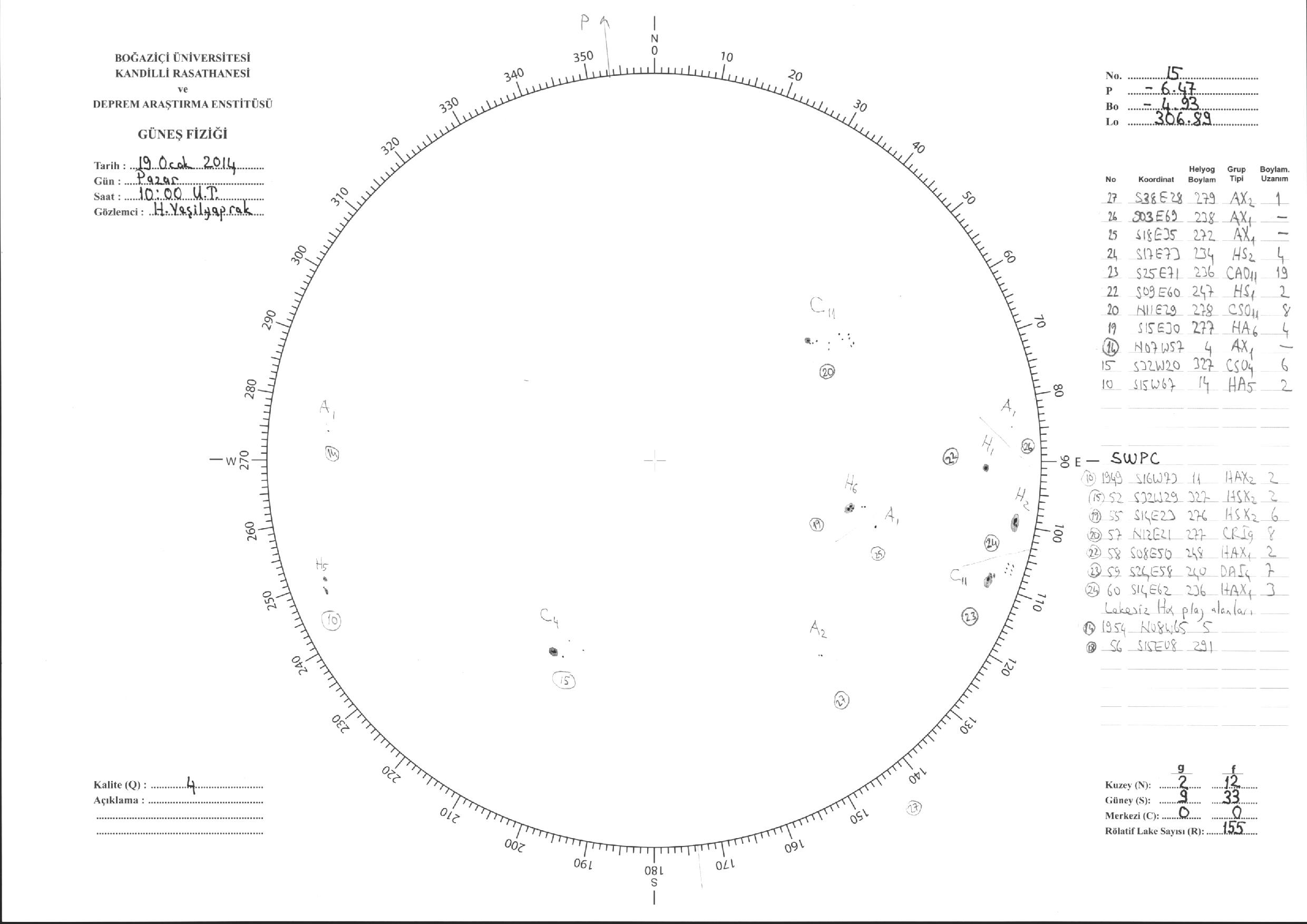 Güneş Lekesi Çizimi - 19.01.2014