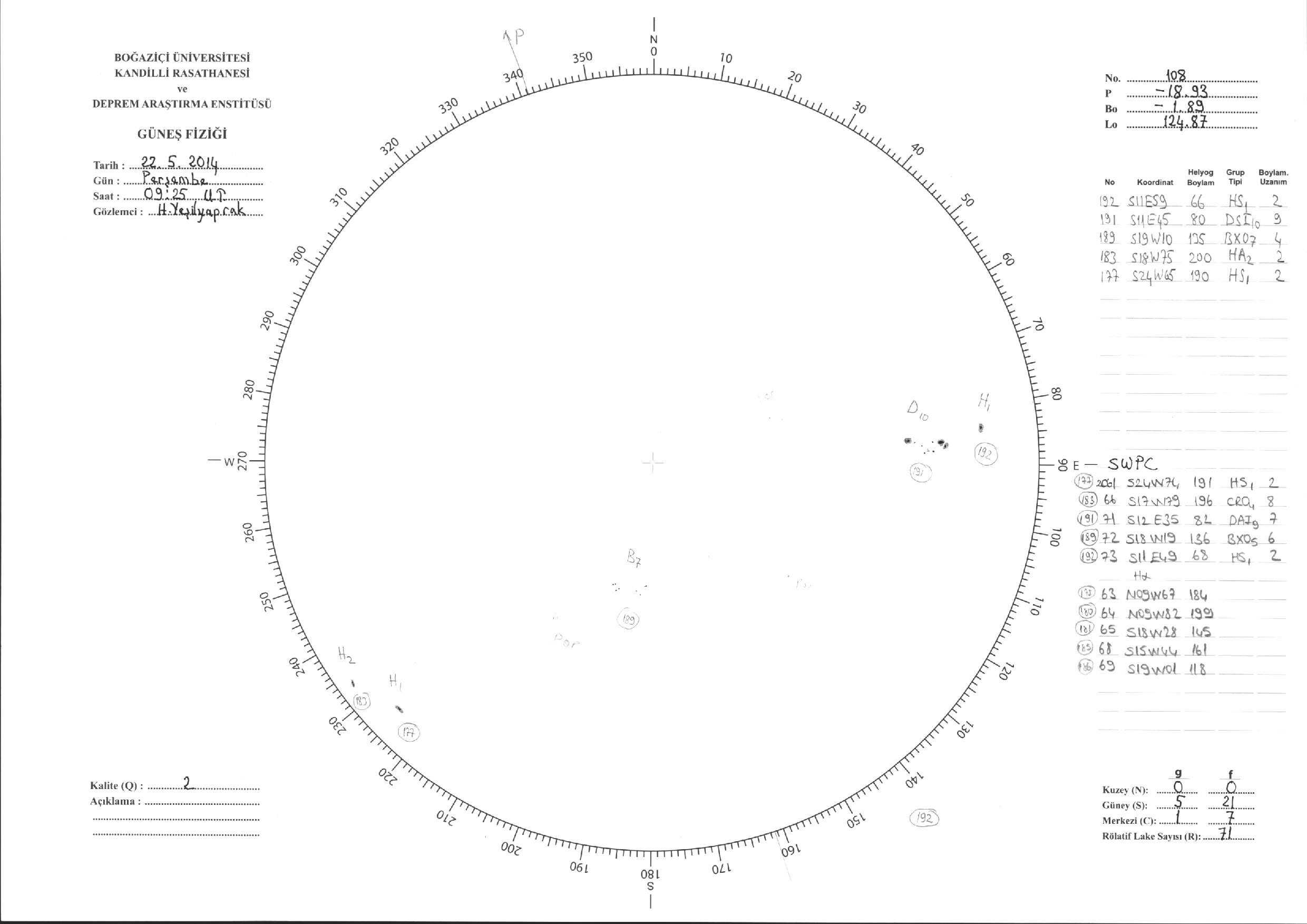 Güneş Lekesi Çizimi - 22.05.2014