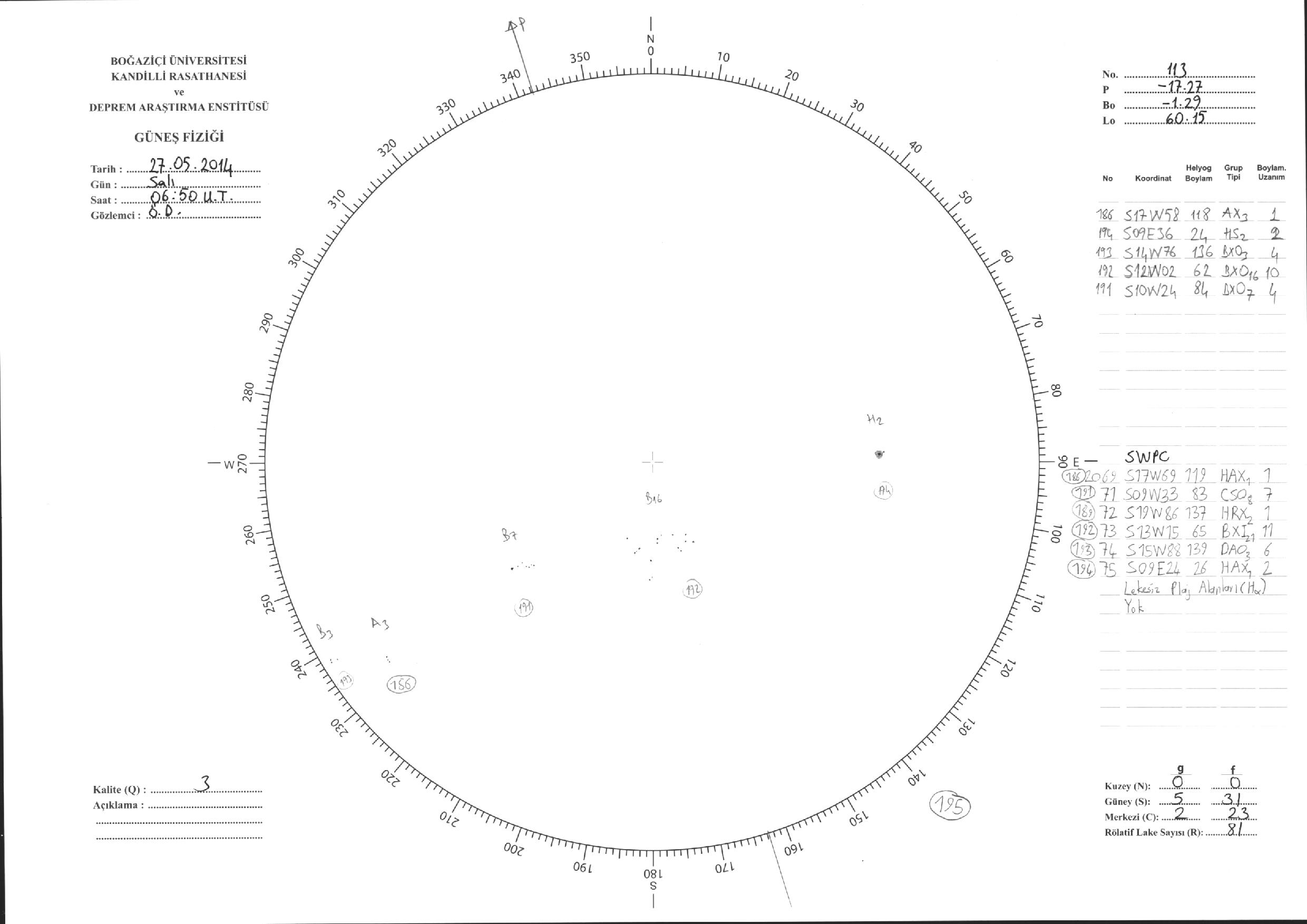 Güneş Lekesi Çizimi - 27.05.2014