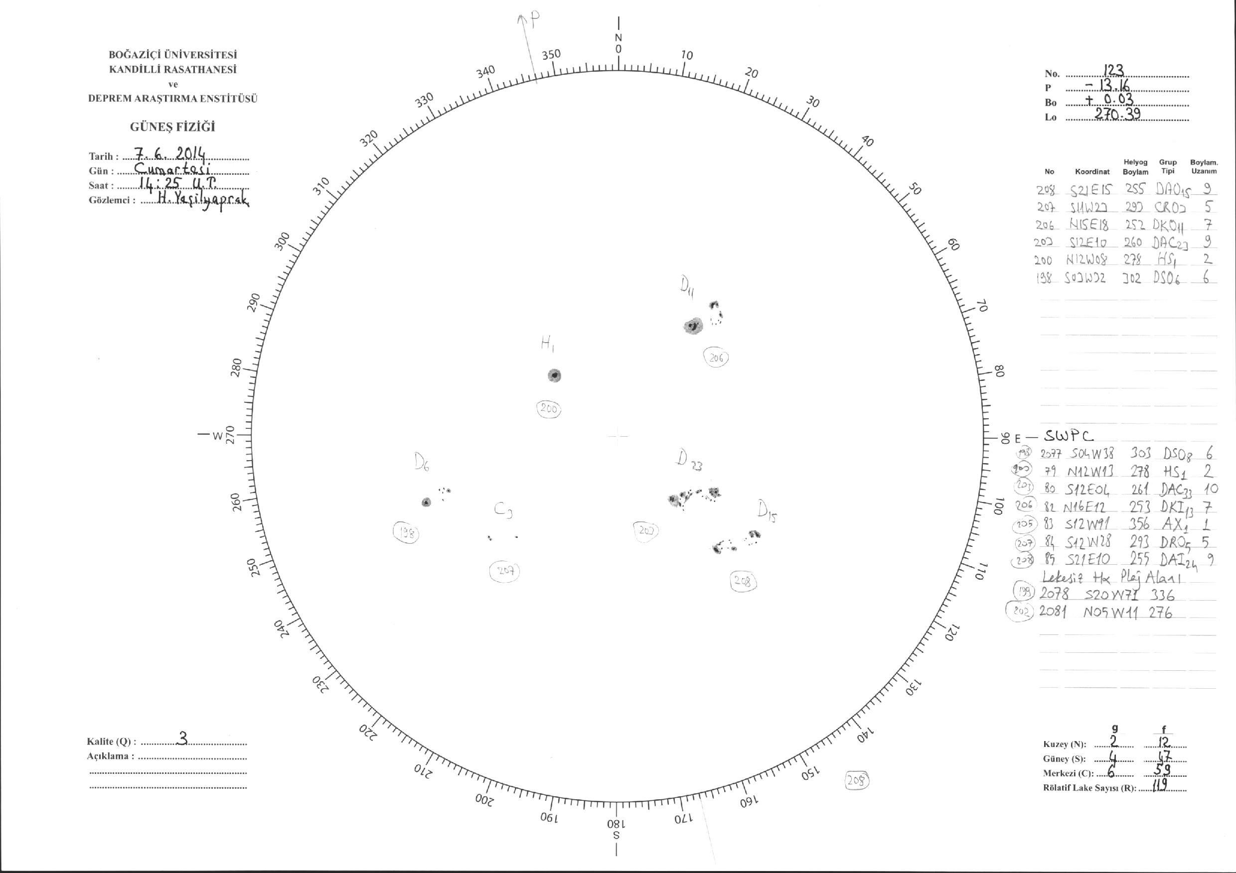 Güneş Lekesi Çizimi - 07.06.2014