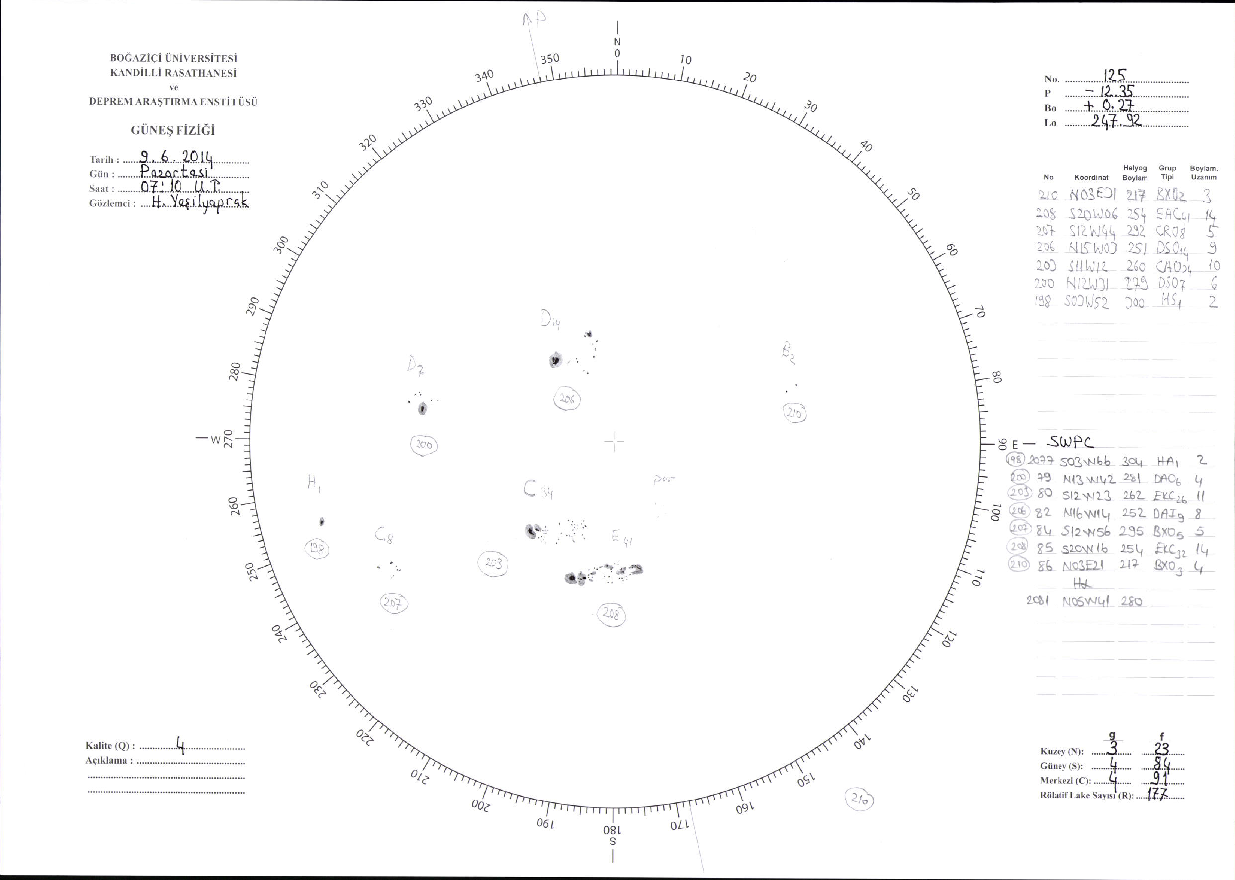Güneş Lekesi Çizimi - 09.06.2014