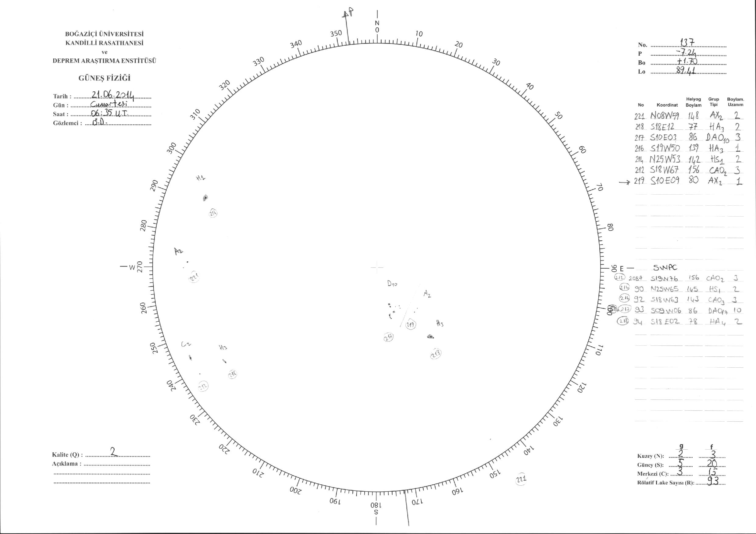 Güneş Lekesi Çizimi - 21.06.2014