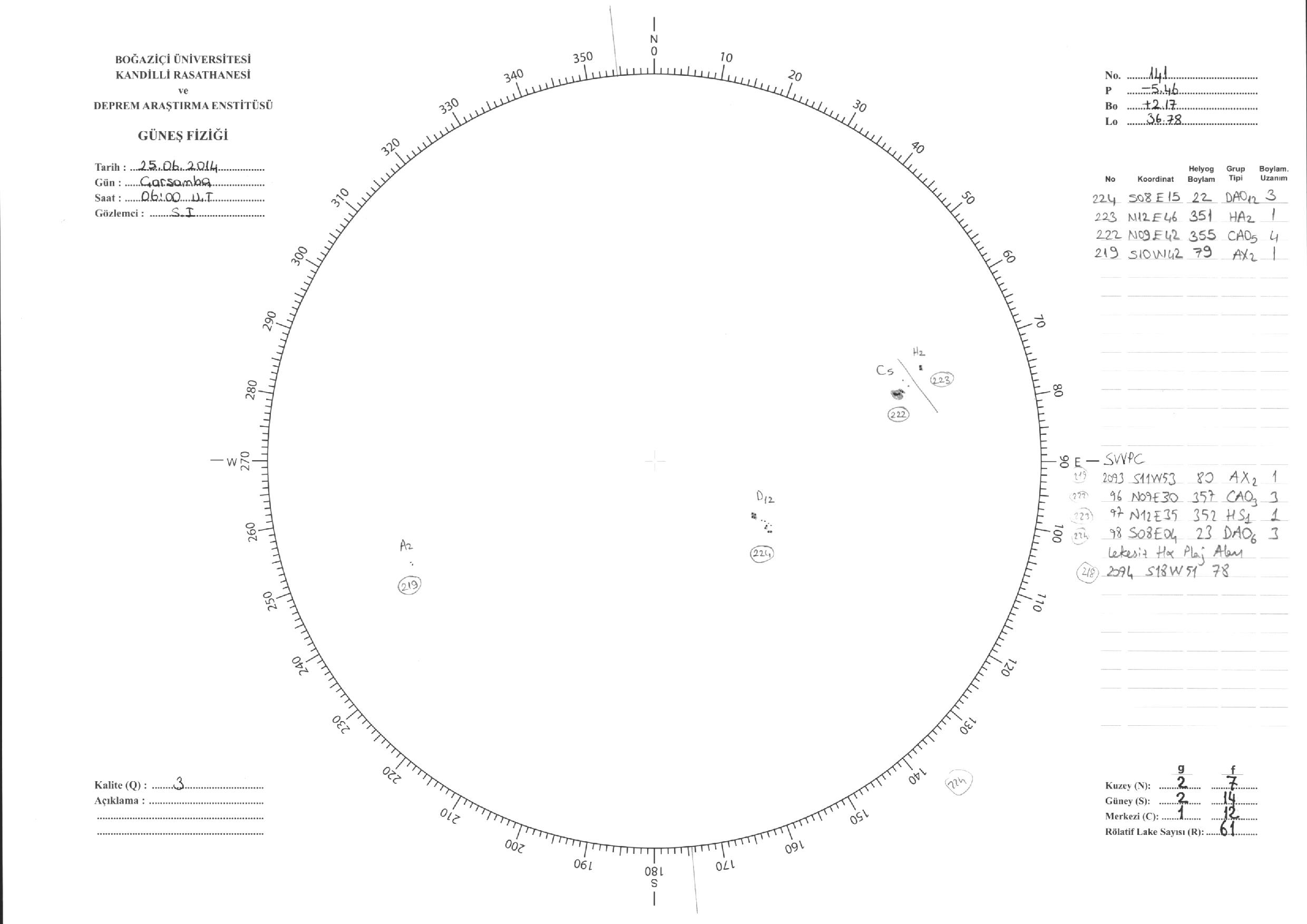 Güneş Lekesi Çizimi - 25.06.2014