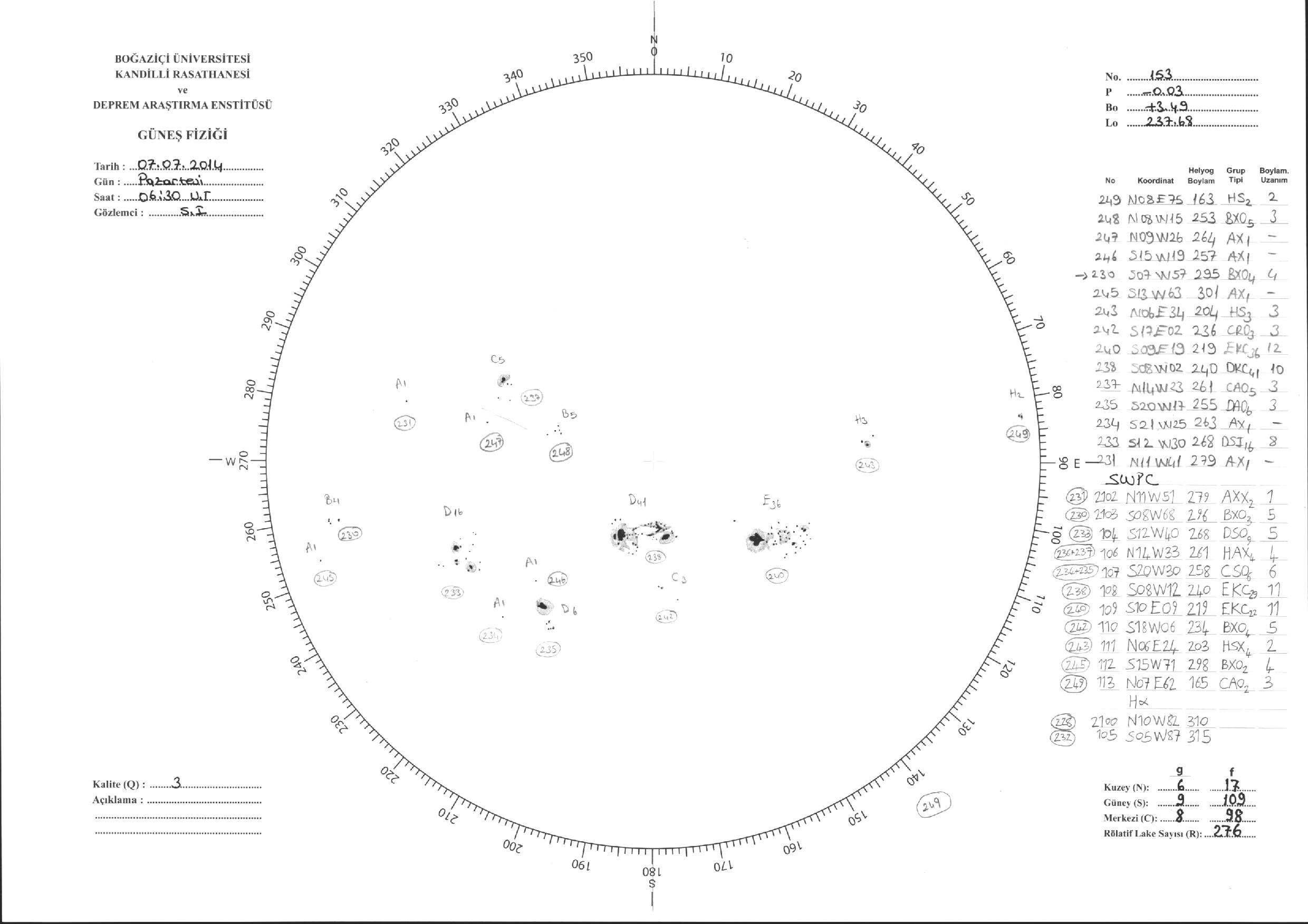 Güneş Lekesi Çizimi - 07.07.2014