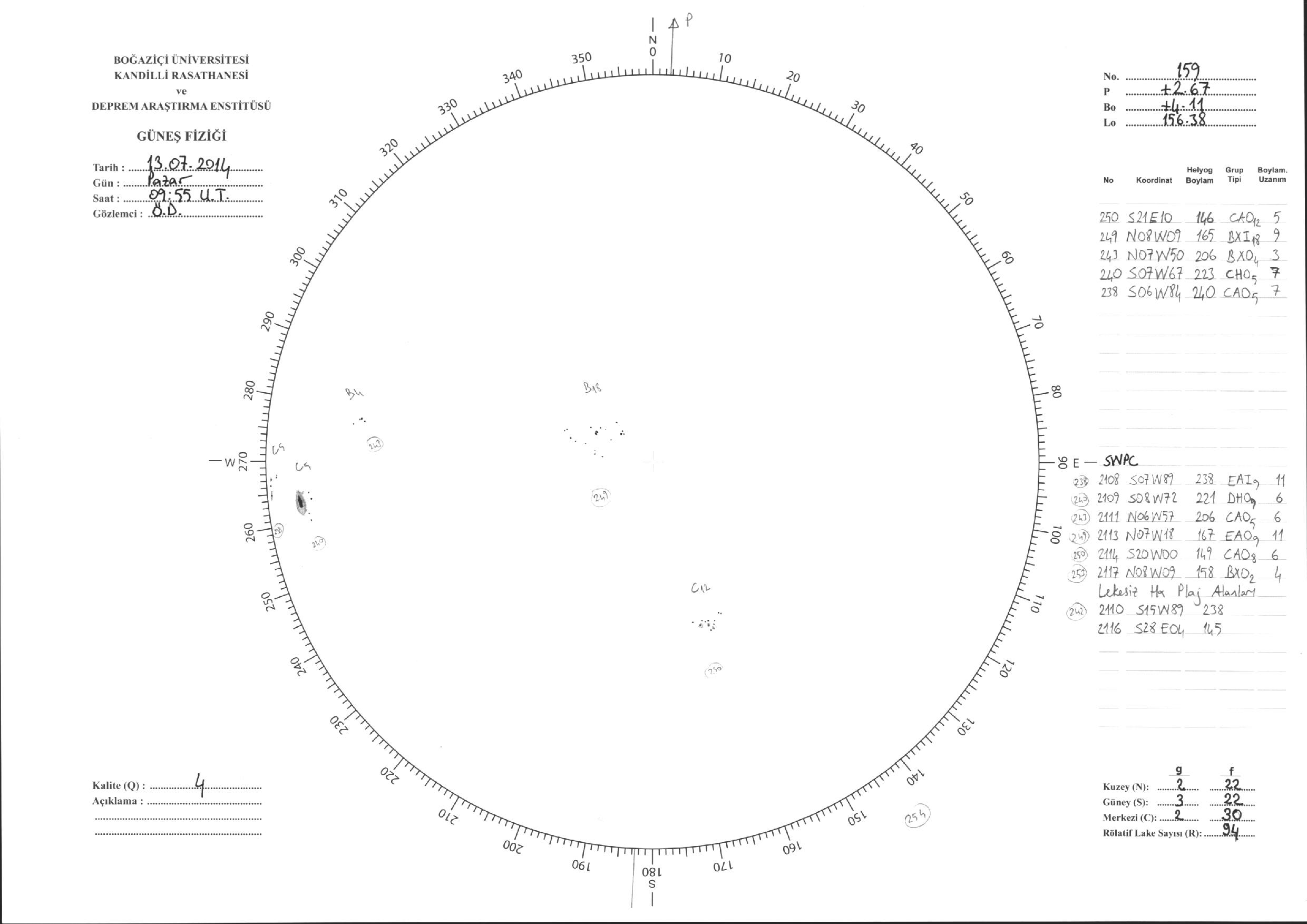 Güneş Lekesi Çizimi - 13.07.2014