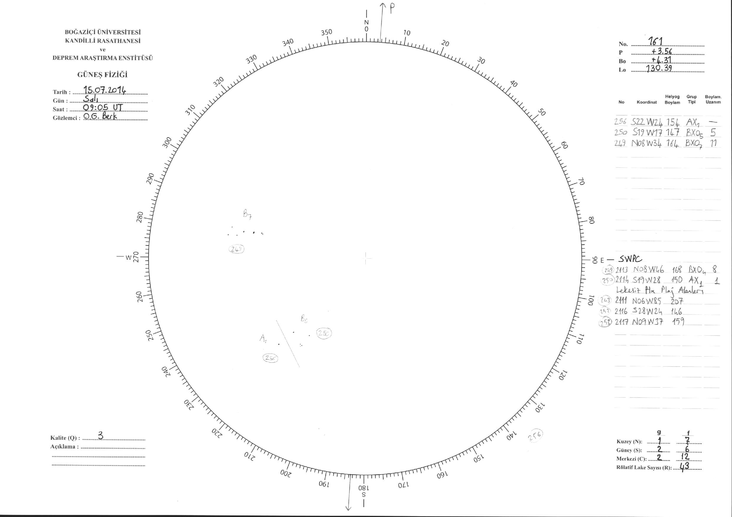 Güneş Lekesi Çizimi - 15.07.2014
