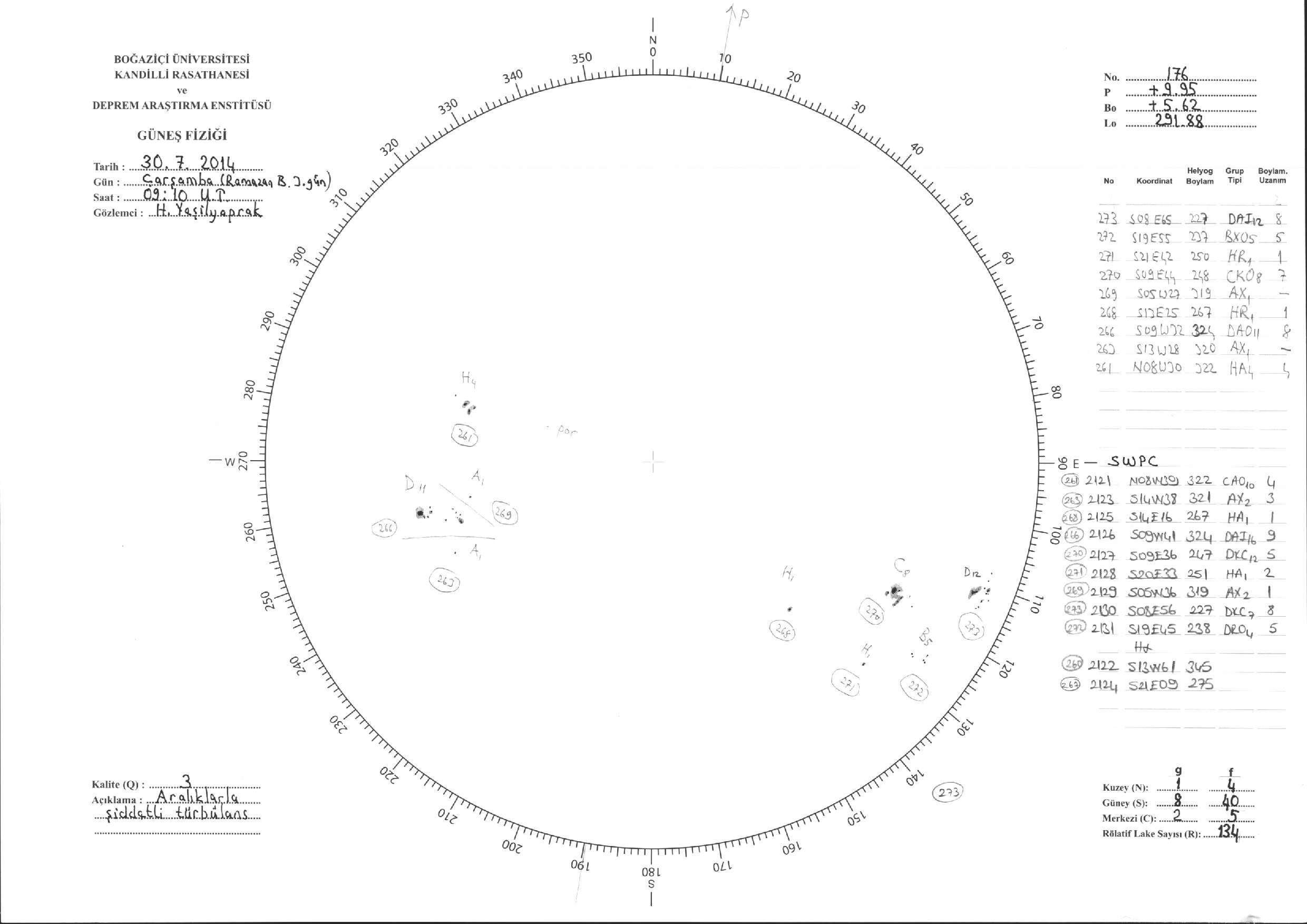 Güneş Lekesi Çizimi - 30.07.2014