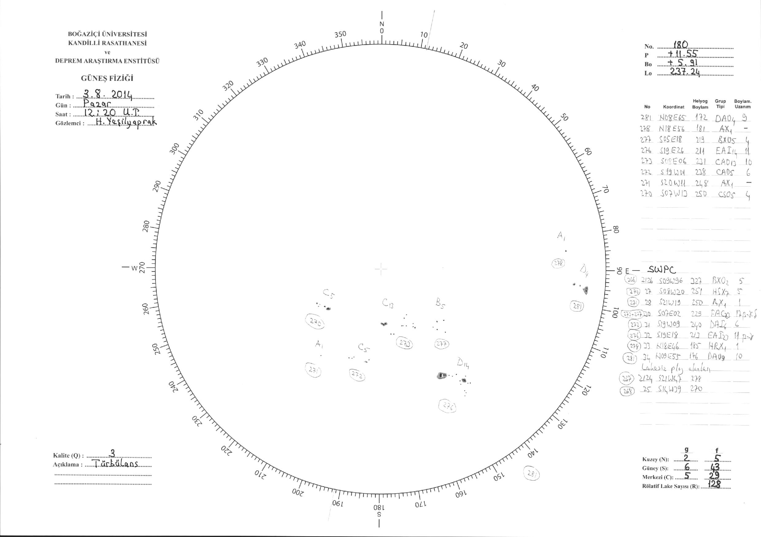 Güneş Lekesi Çizimi - 03.08.2014