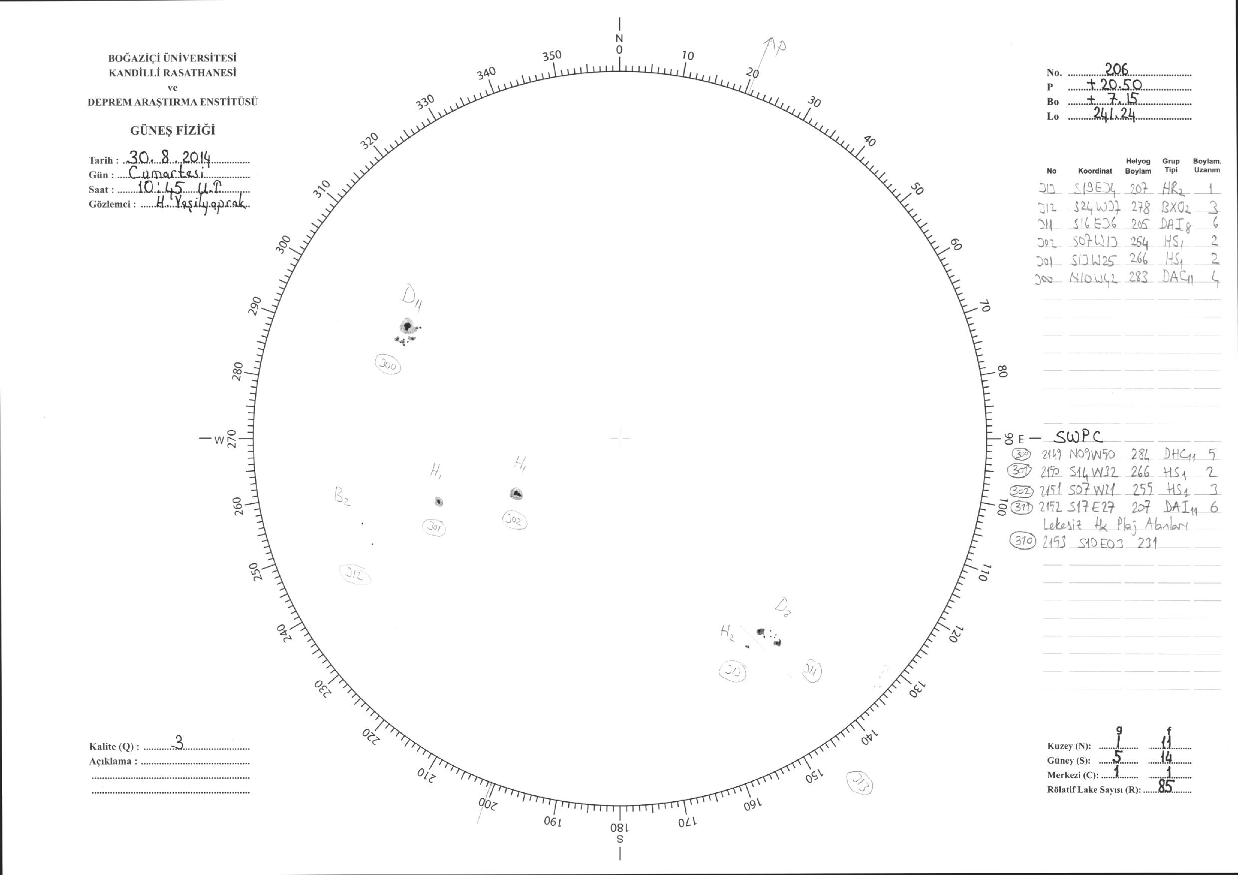 Güneş Lekesi Çizimi - 30.08.2014