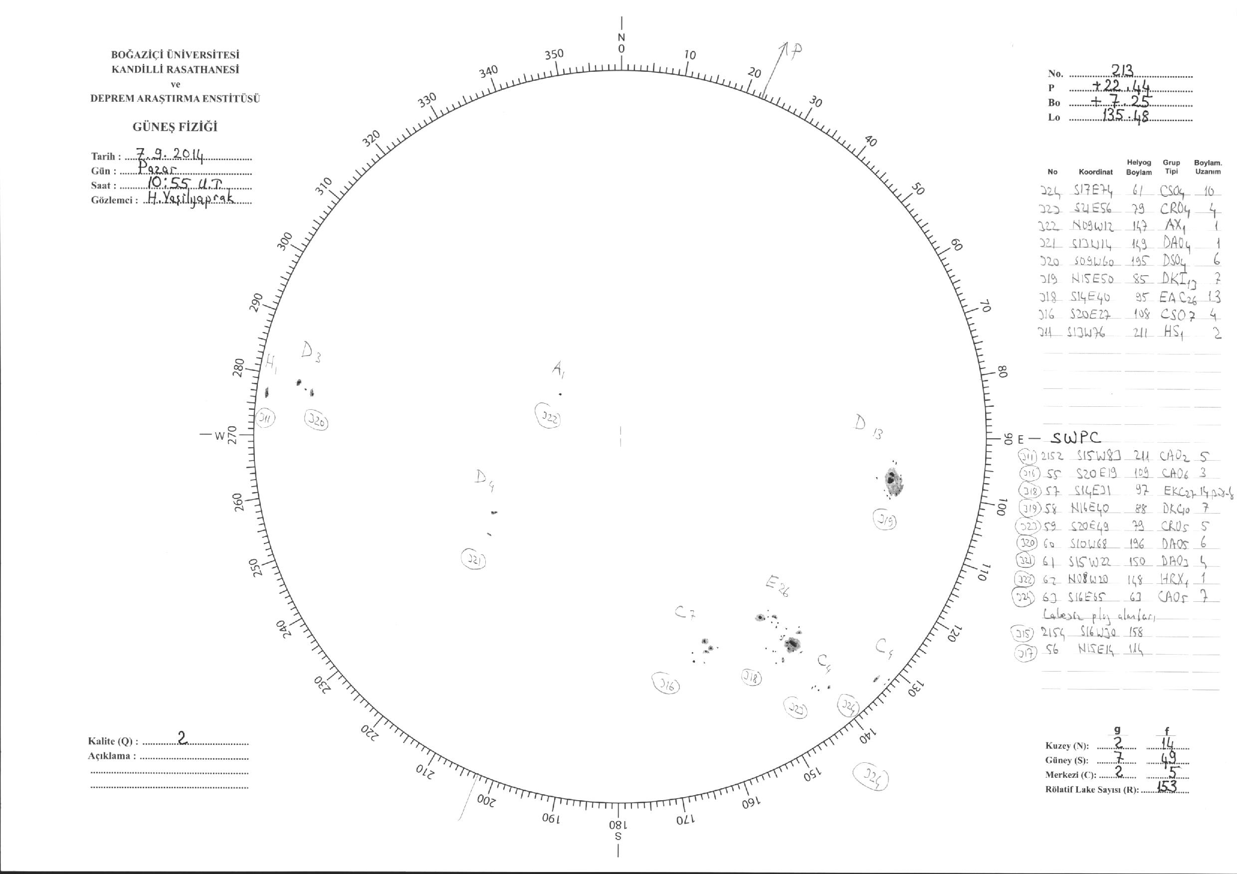 Güneş Lekesi Çizimi - 07.09.2014