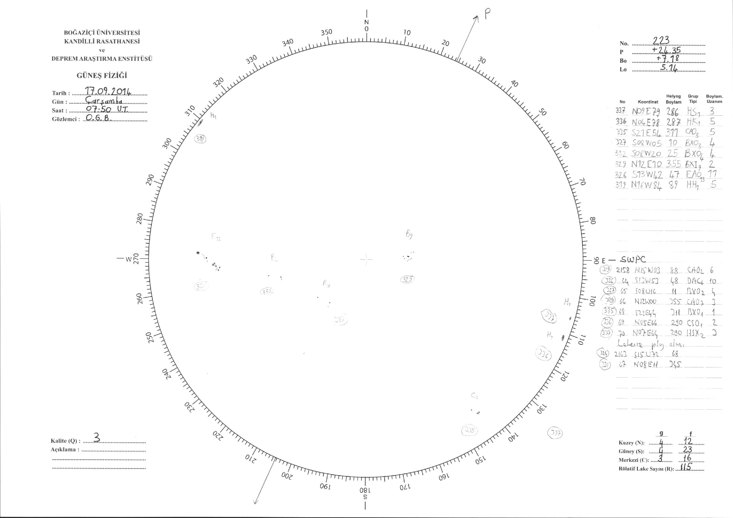 Güneş Lekesi Çizimi - 17.09.2014