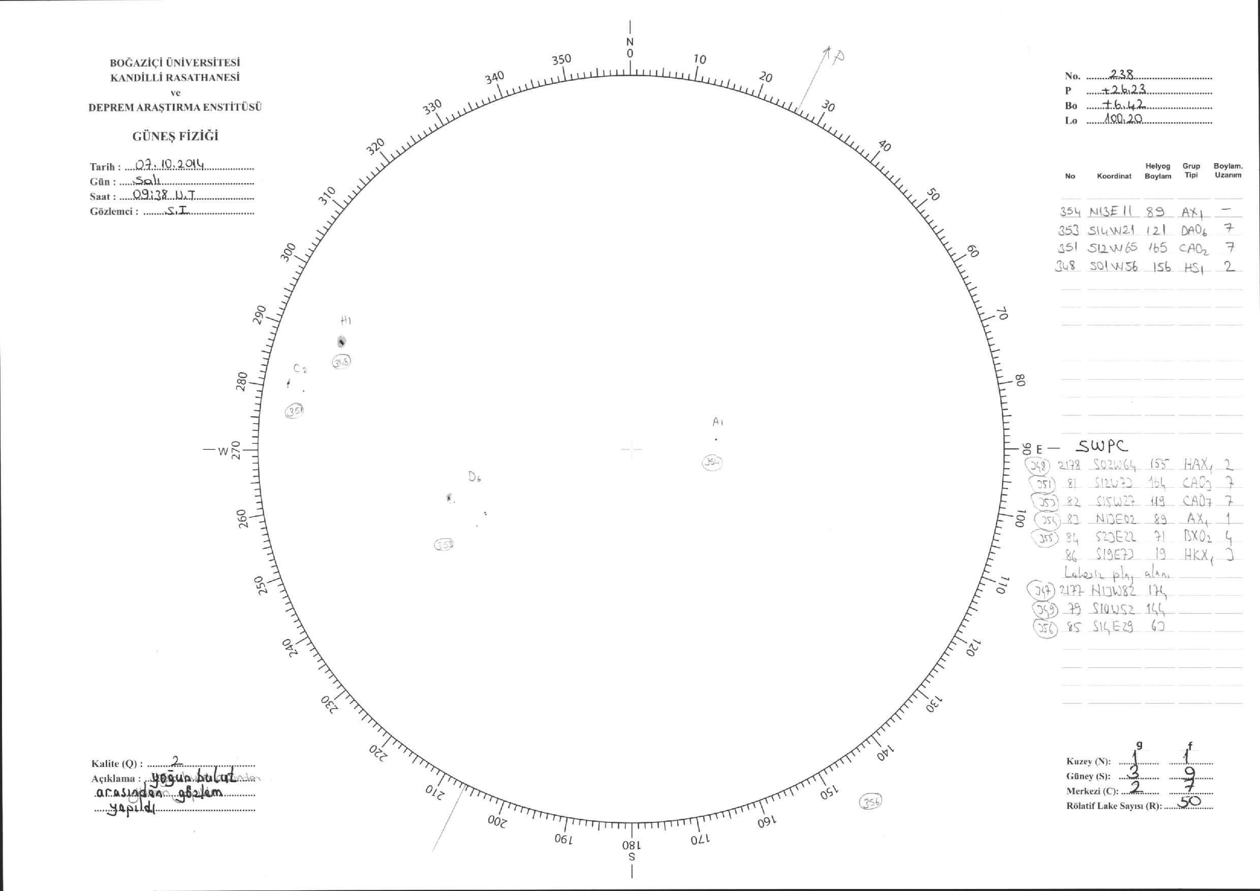 Güneş Lekesi Çizimi - 07.10.2014