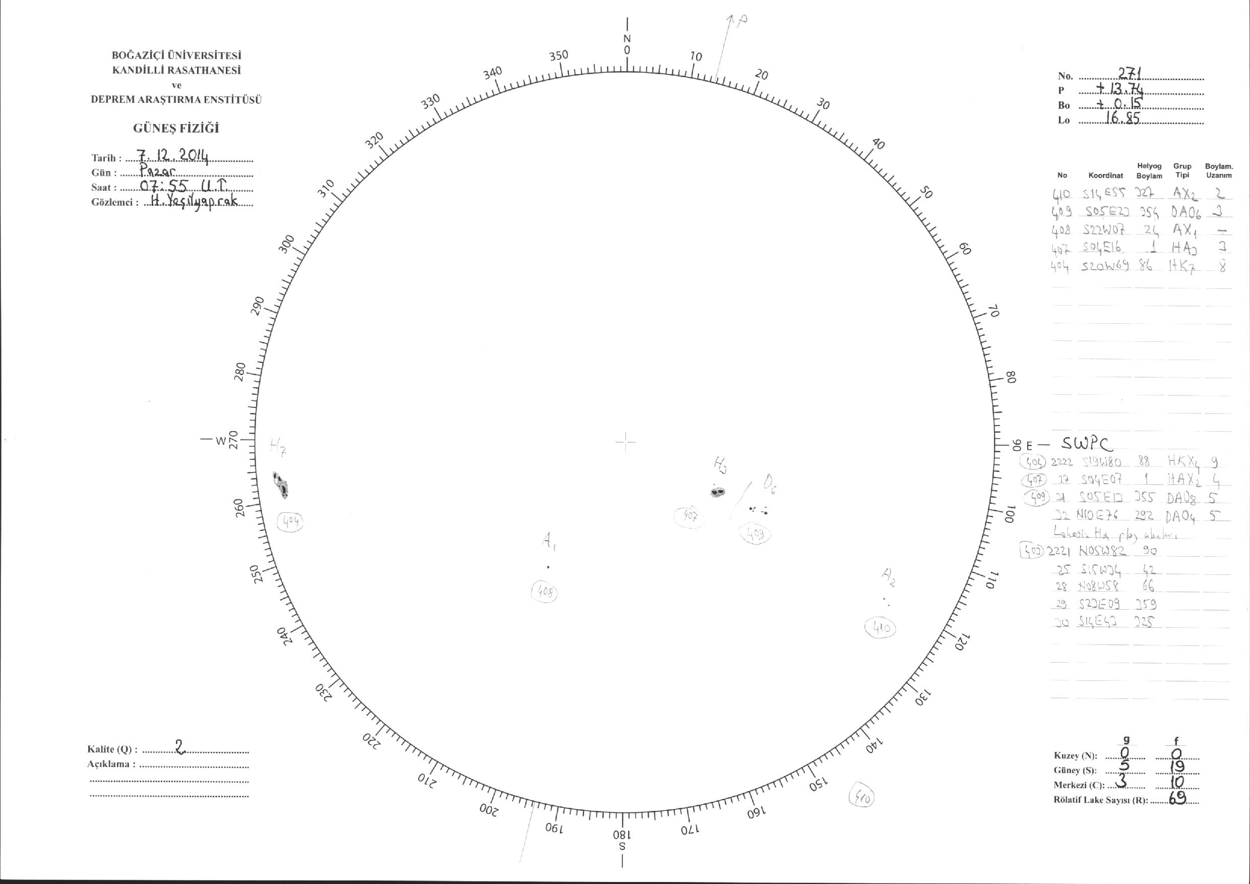 Güneş Lekesi Çizimi - 07.12.2014
