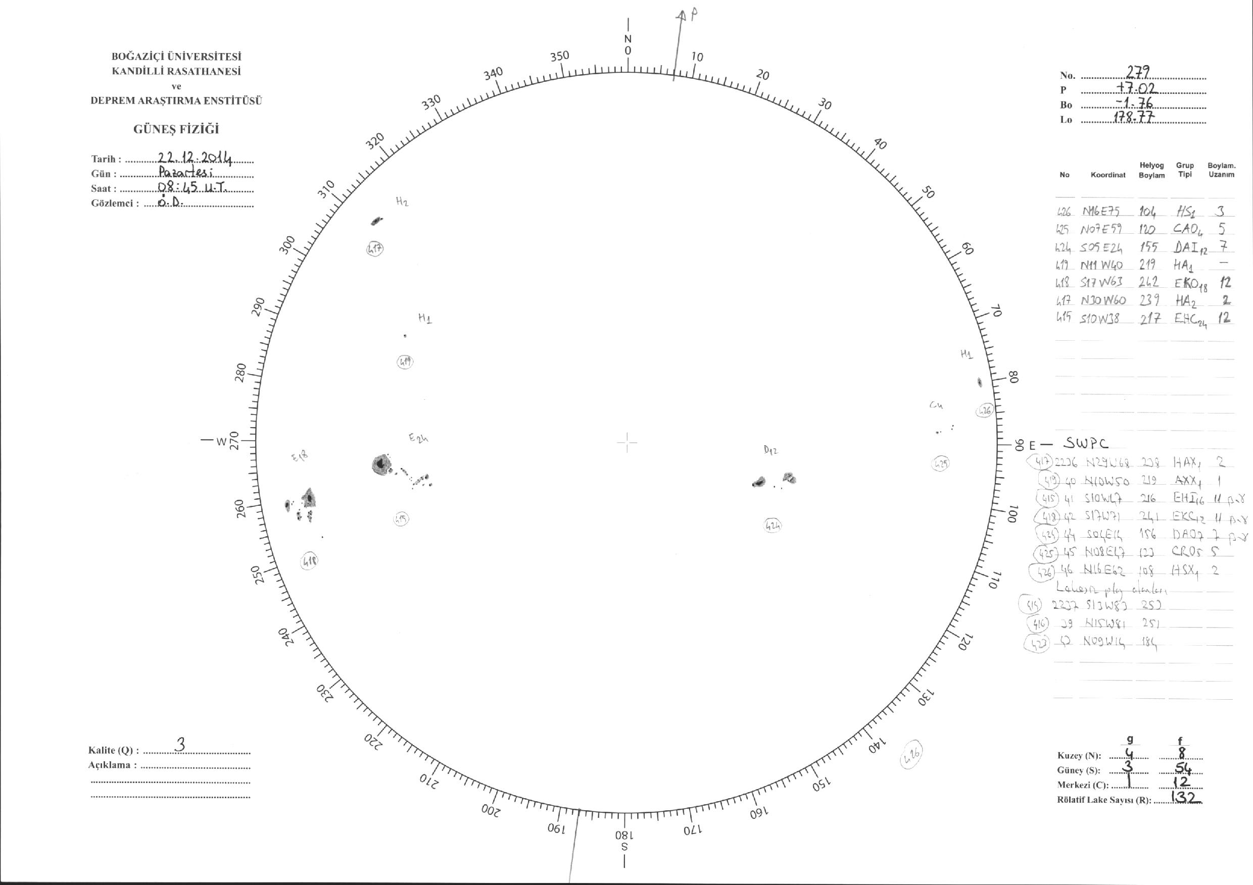 Güneş Lekesi Çizimi - 22.12.2014