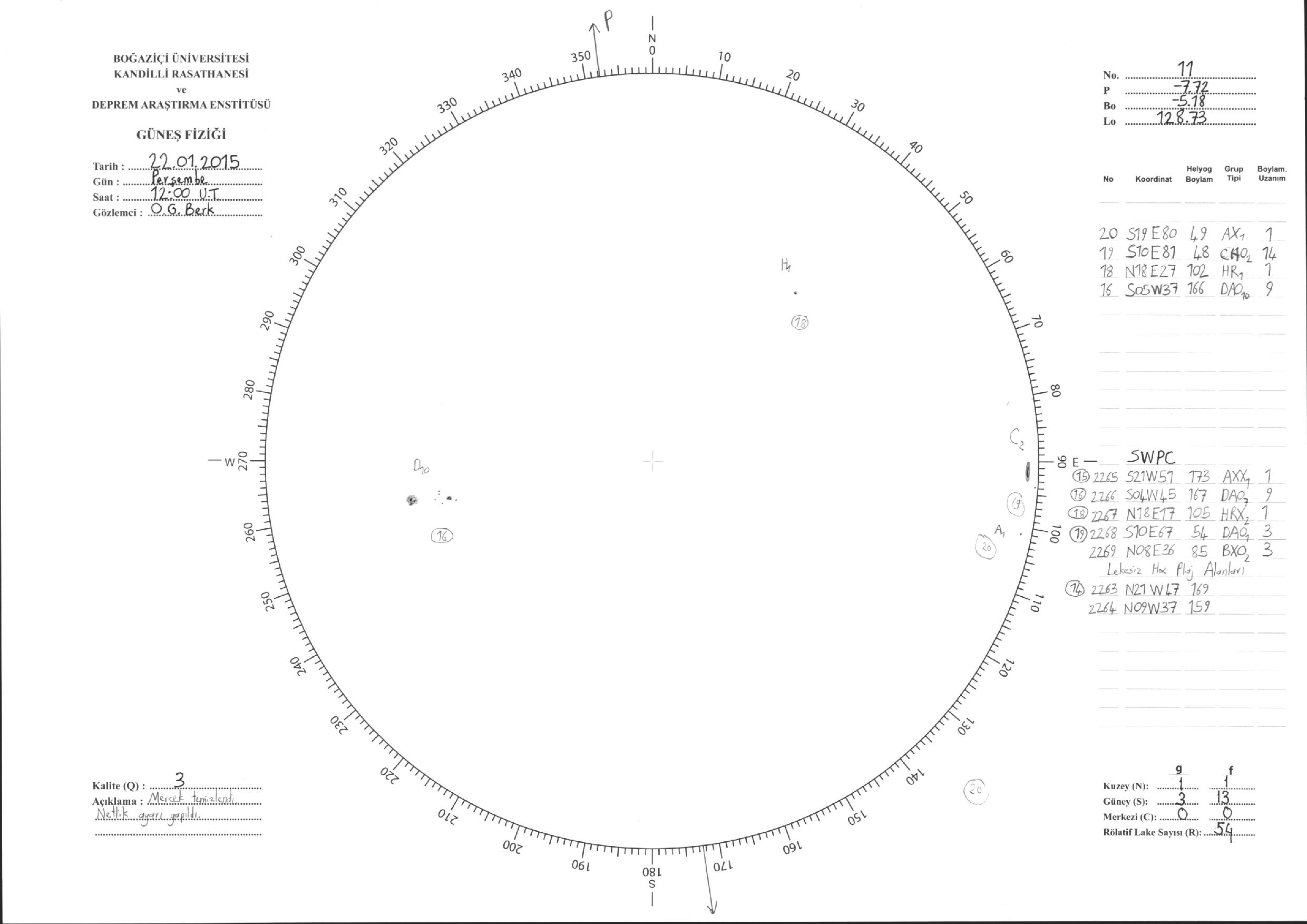 Güneş Lekesi Çizimi - 22.01.2015