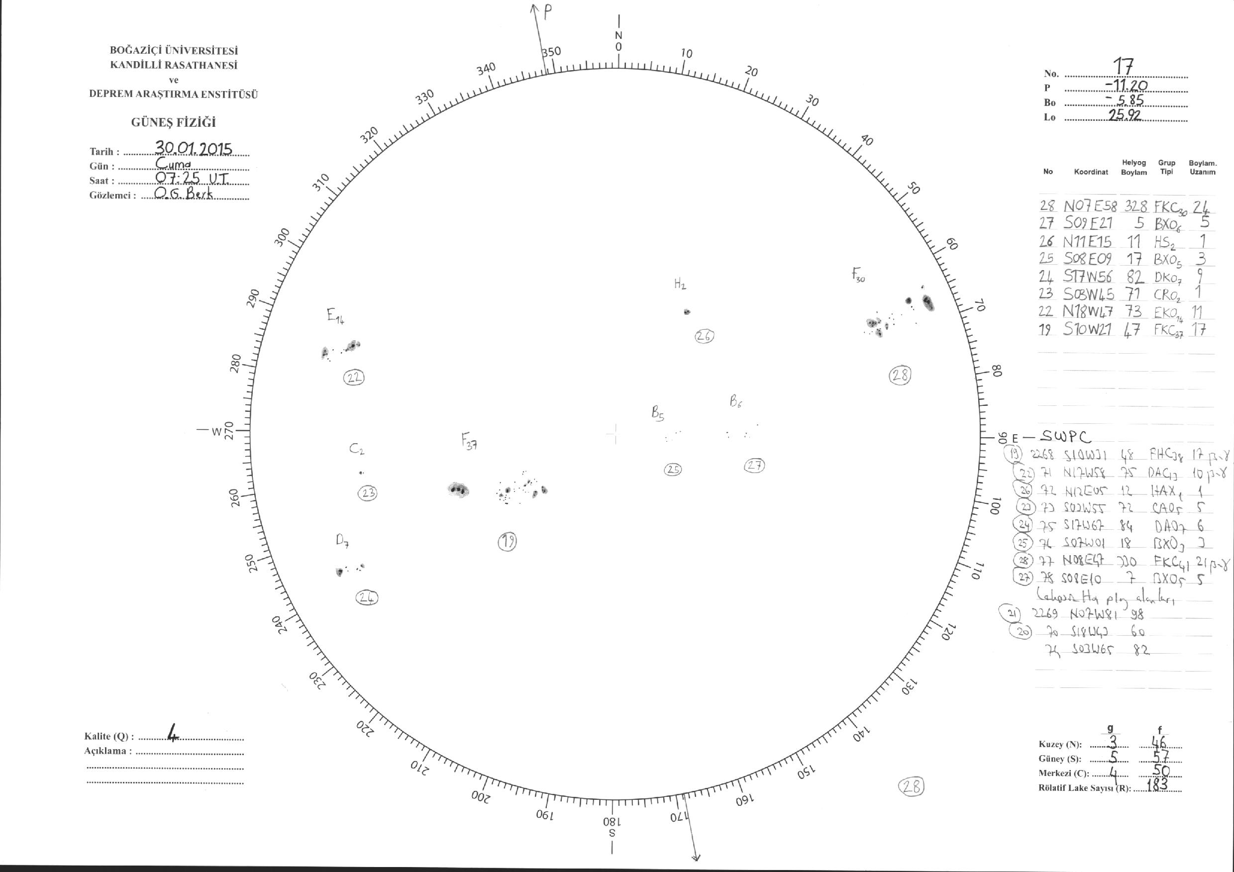 Güneş Lekesi Çizimi - 30.01.2015