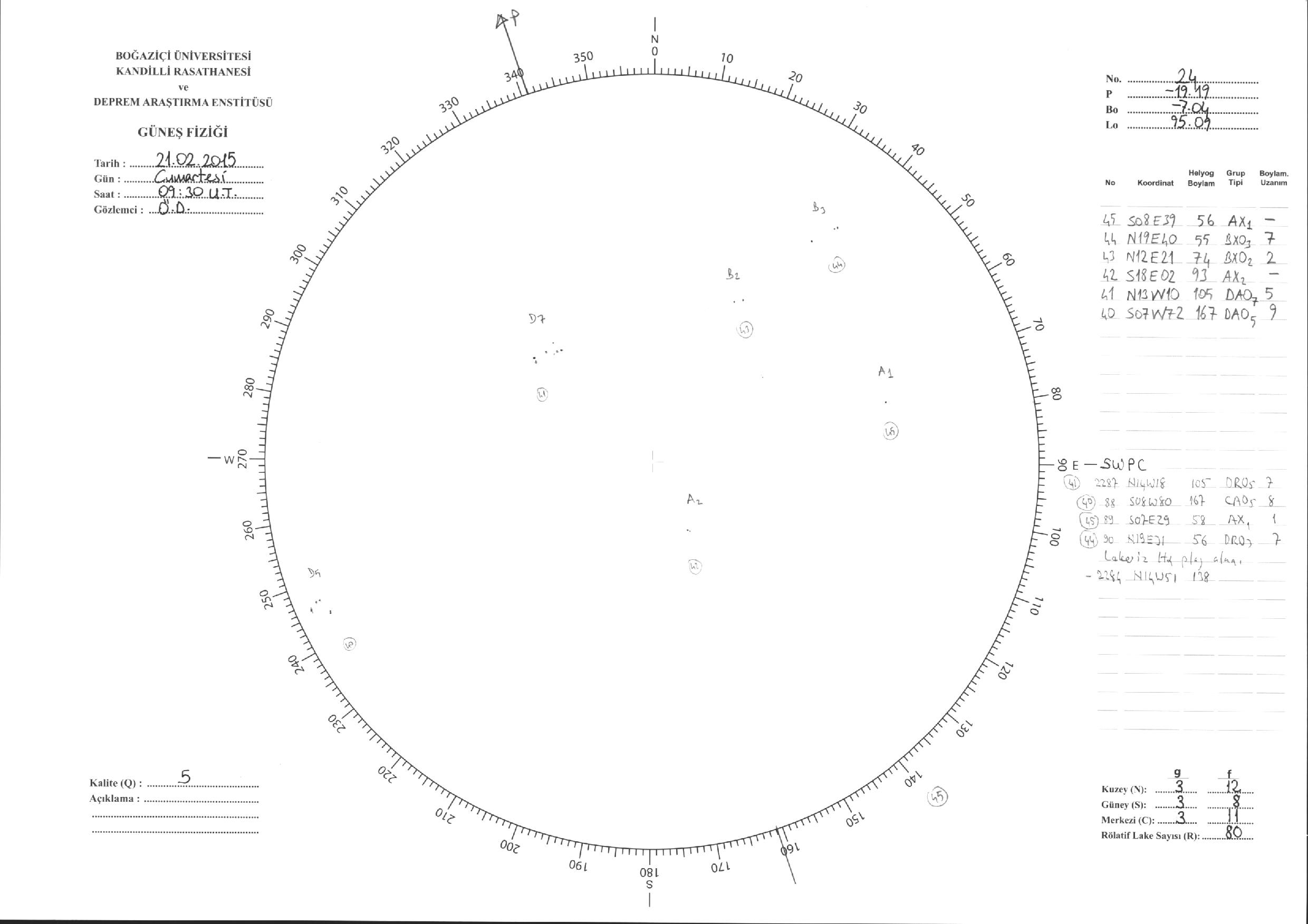 Güneş Lekesi Çizimi - 21.02.2015