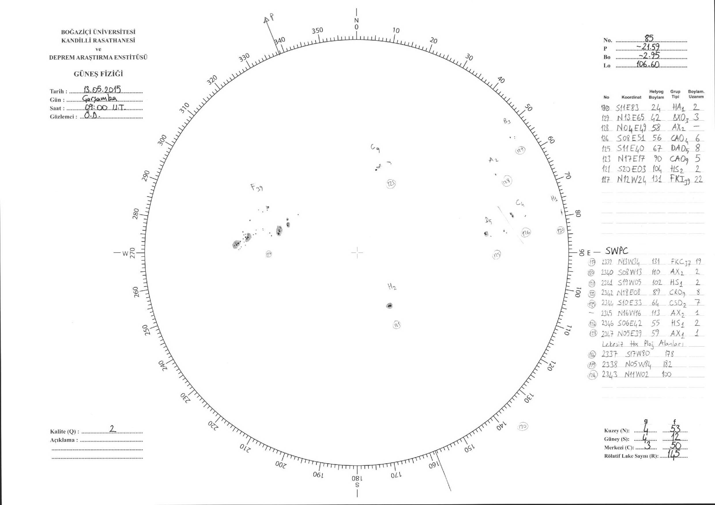 Güneş Lekesi Çizimi - 13.05.2015