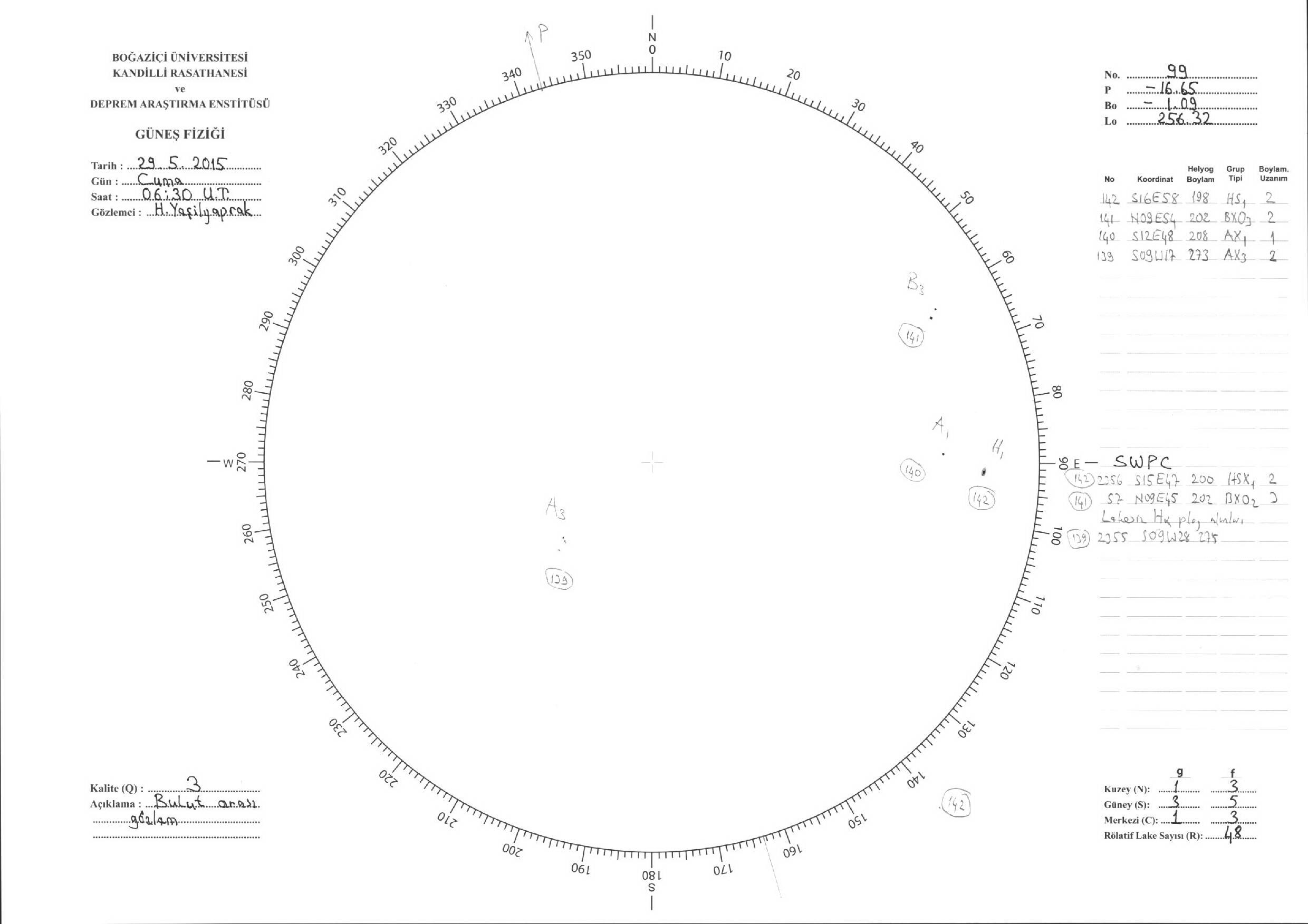 Güneş Lekesi Çizimi - 29.05.2015