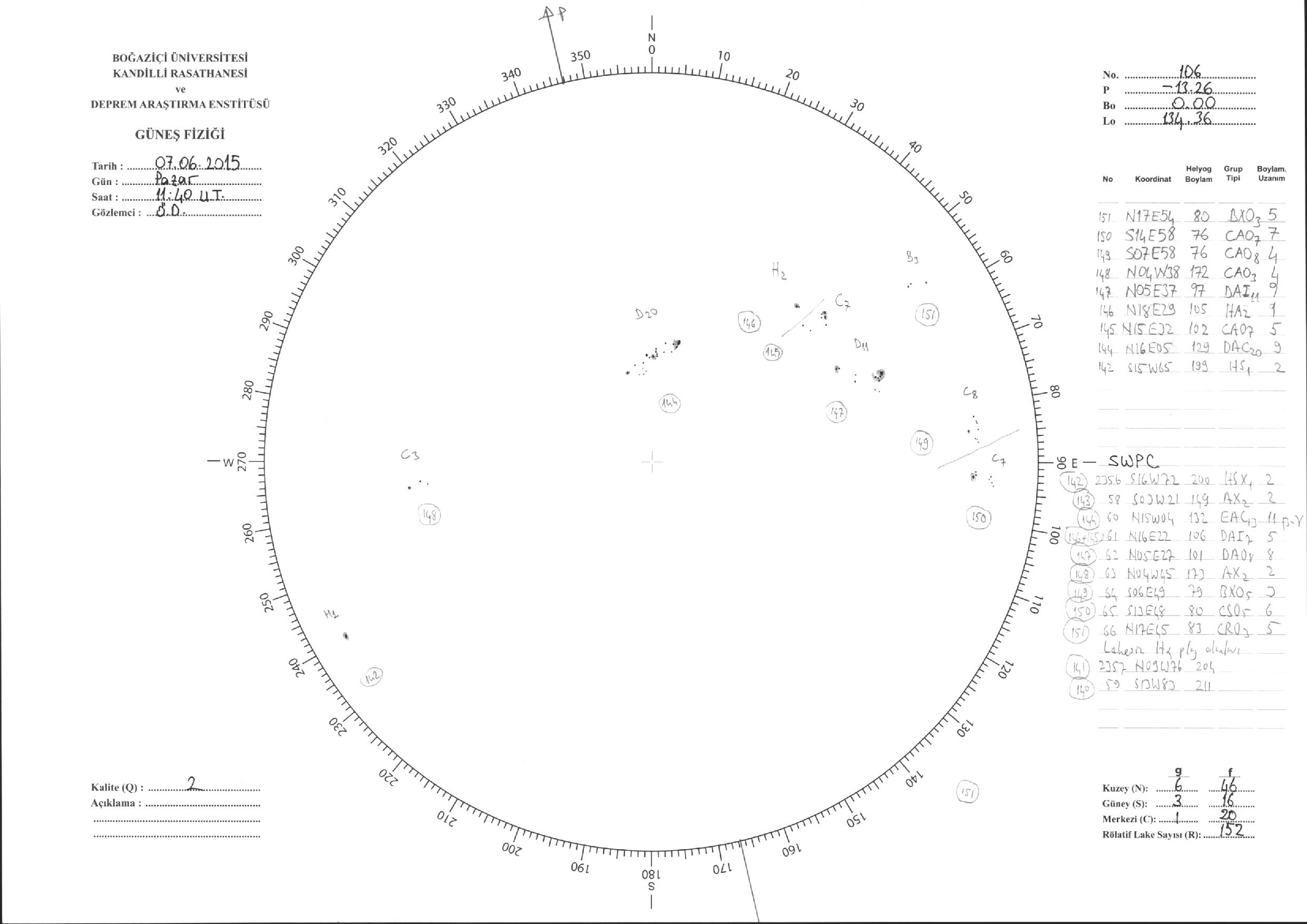 Güneş Lekesi Çizimi - 07.06.2015