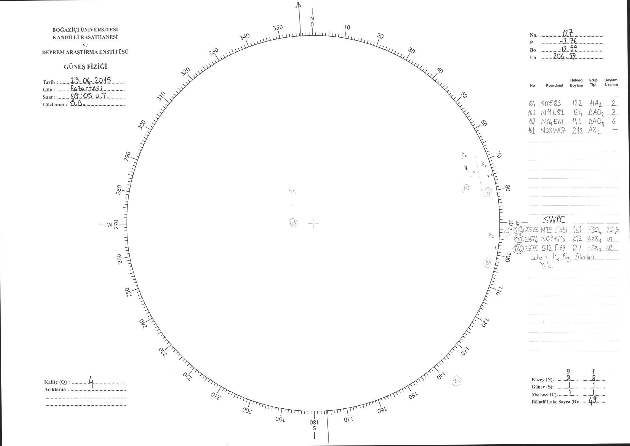 Güneş Lekesi Çizimi - 29.06.2015