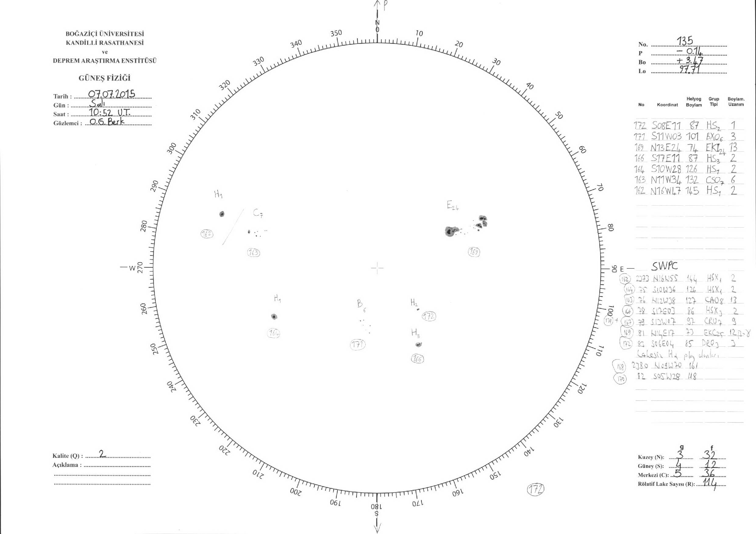 Güneş Lekesi Çizimi - 07.07.2015