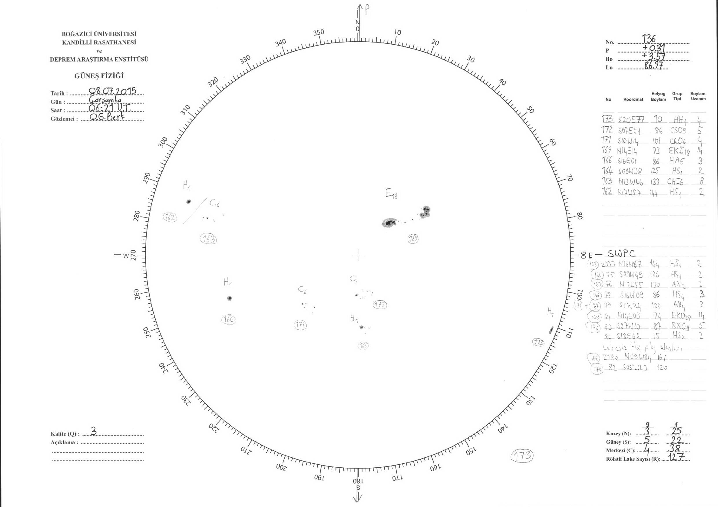 Güneş Lekesi Çizimi - 08.07.2015