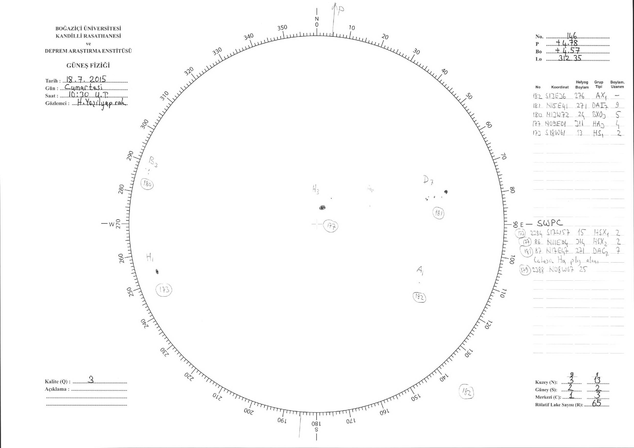 Güneş Lekesi Çizimi - 18.07.2015