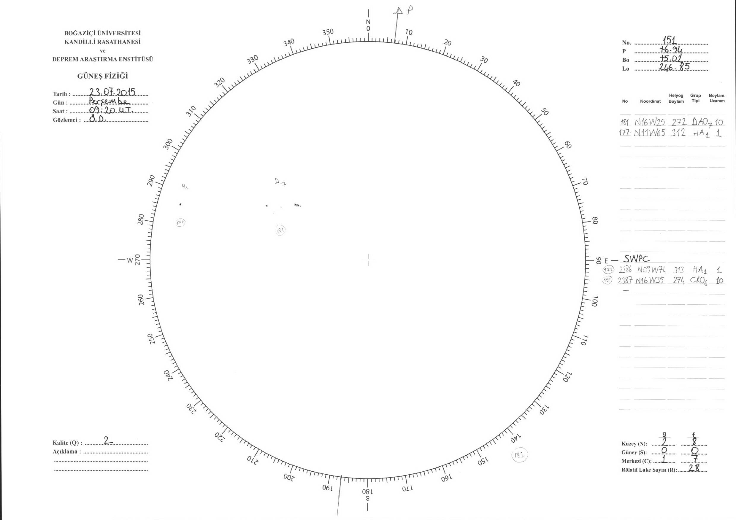 Güneş Lekesi Çizimi - 23.07.2015