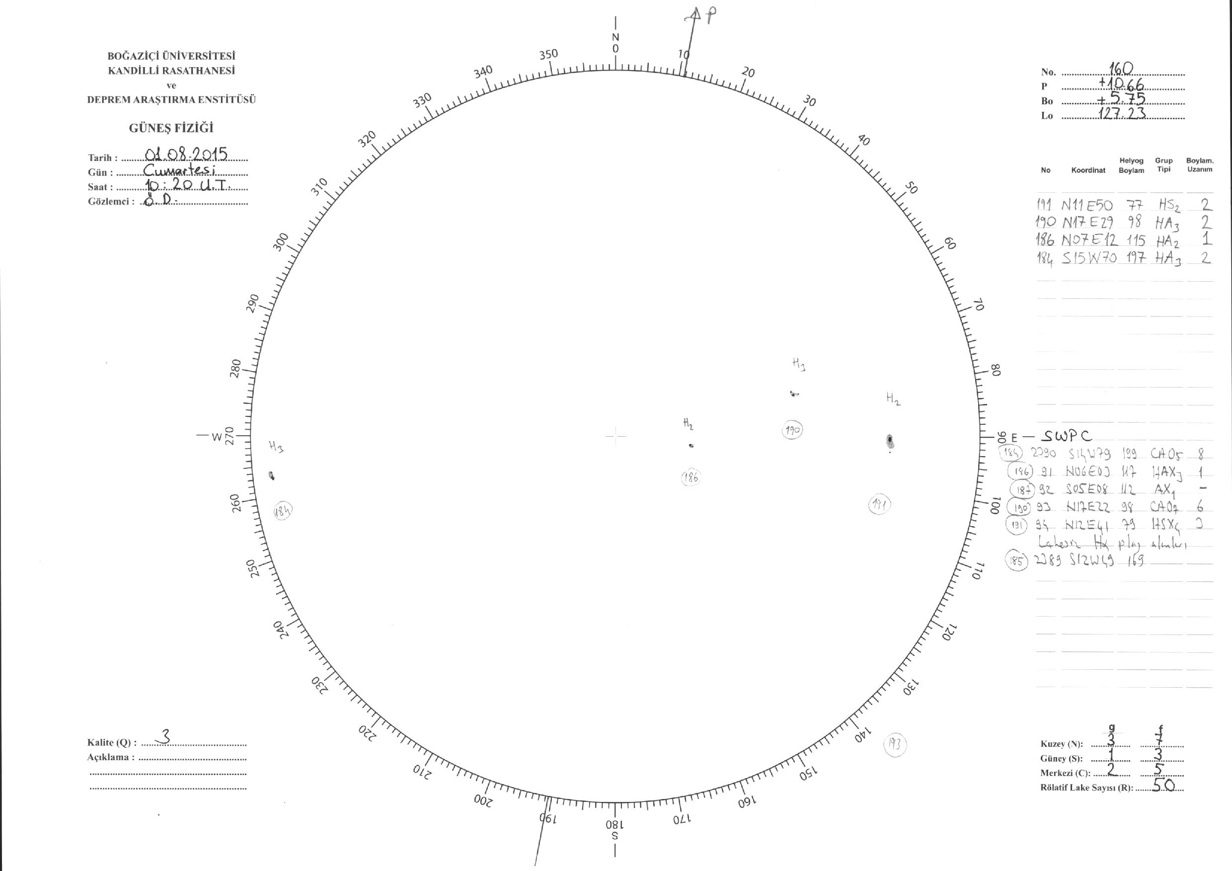 Güneş Lekesi Çizimi - 01.08.2015