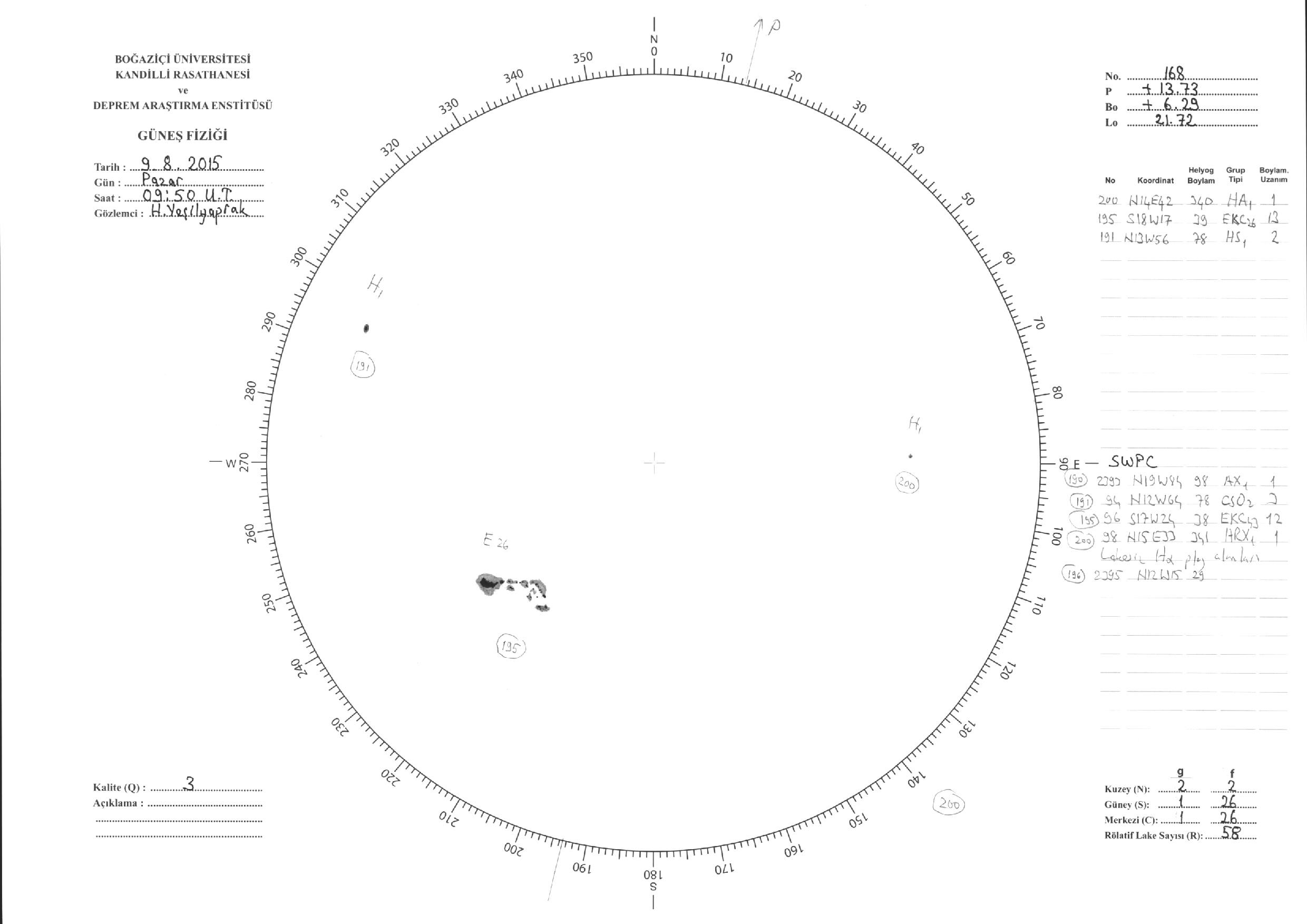 Güneş Lekesi Çizimi - 09.08.2015