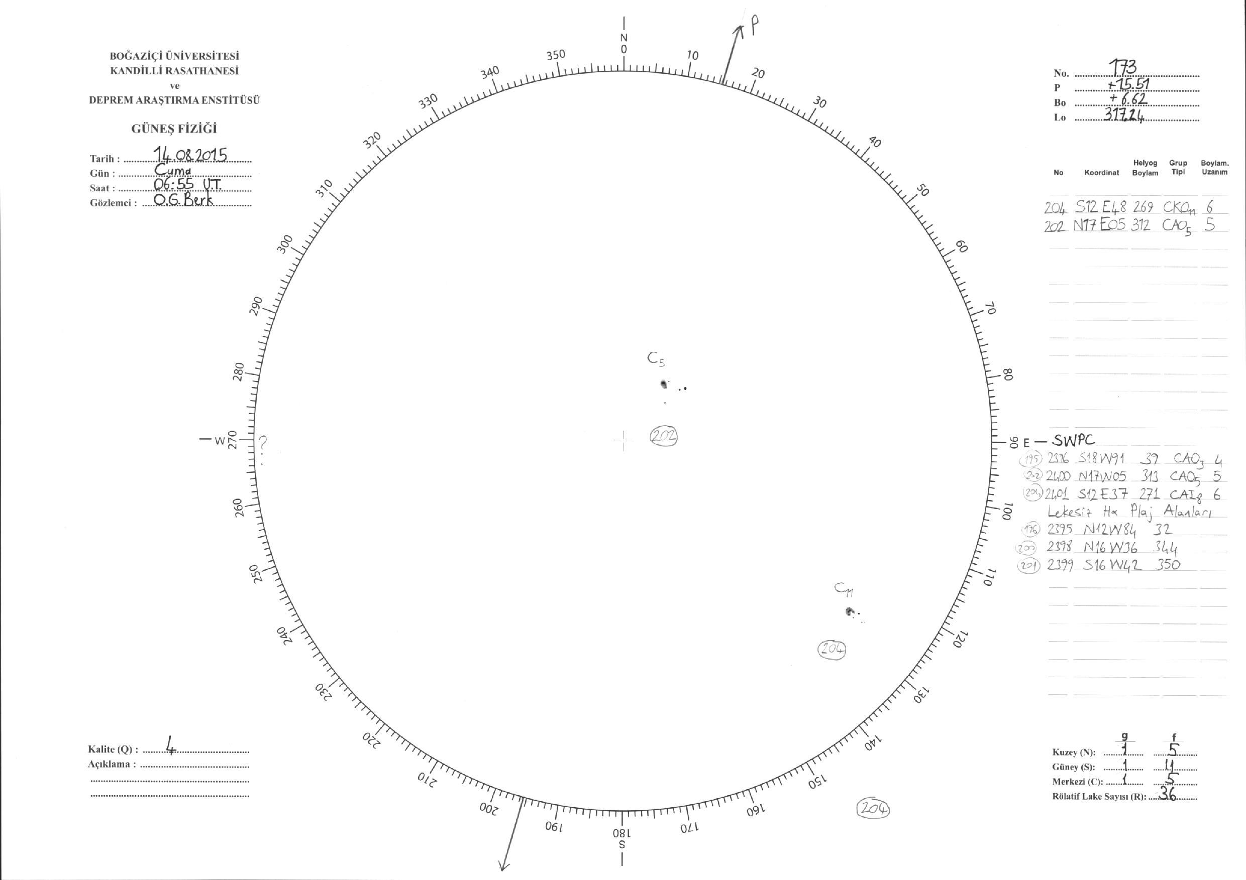 Güneş Lekesi Çizimi - 14.08.2015