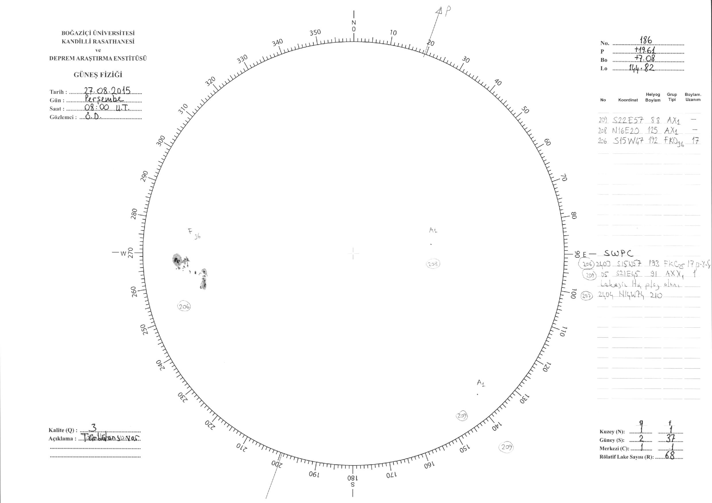 Güneş Lekesi Çizimi - 27.08.2015