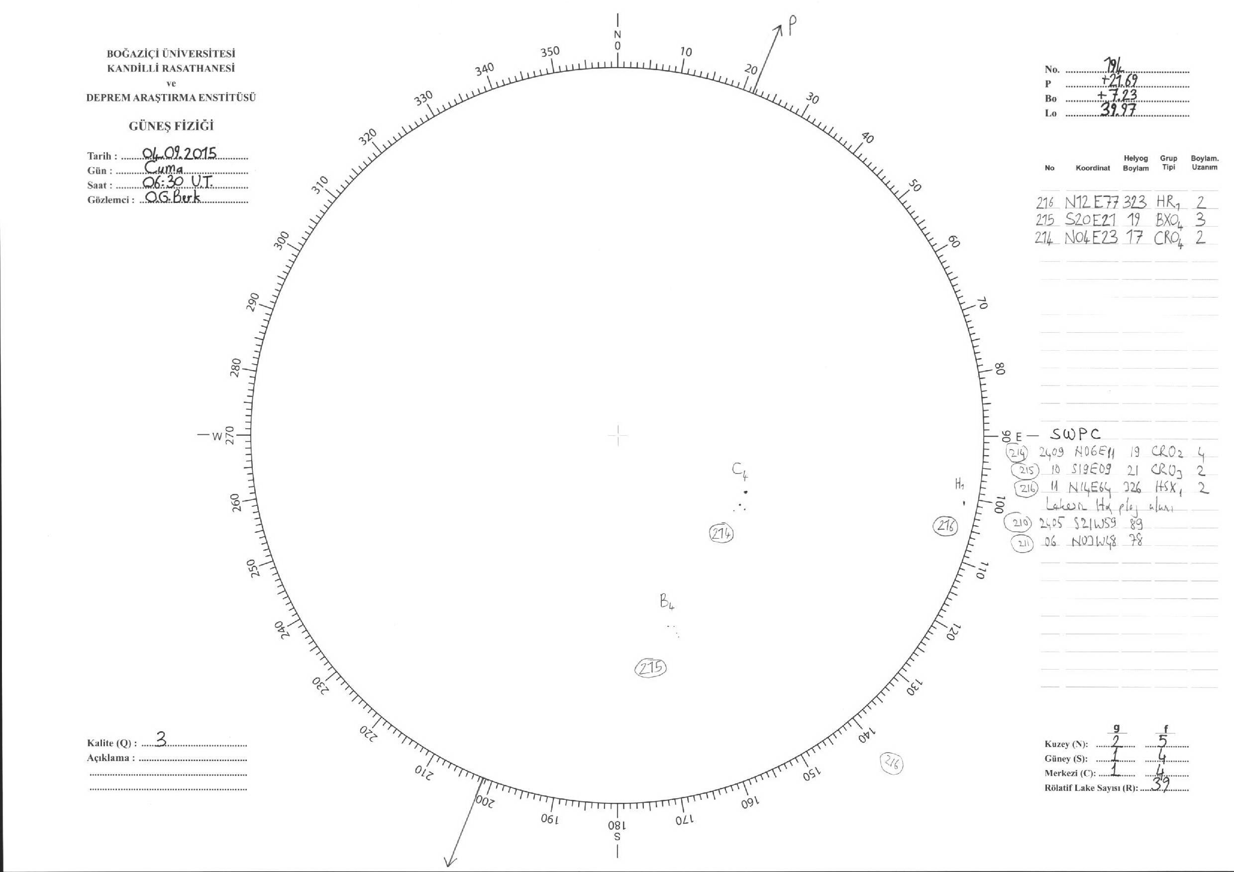 Güneş Lekesi Çizimi - 04.09.2015