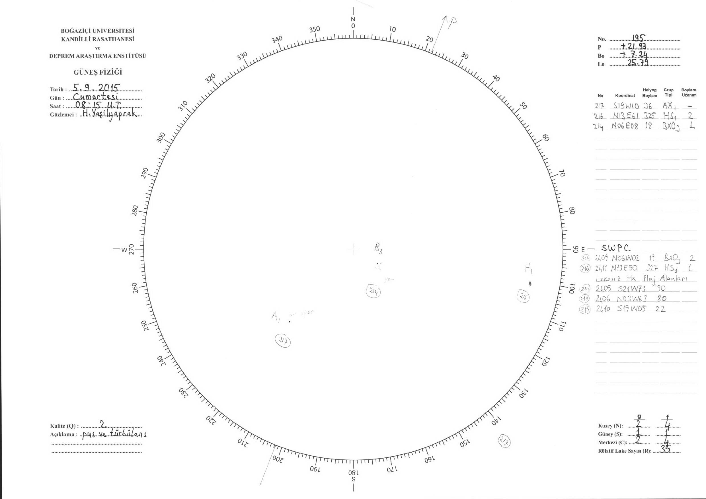 Güneş Lekesi Çizimi - 05.09.2015