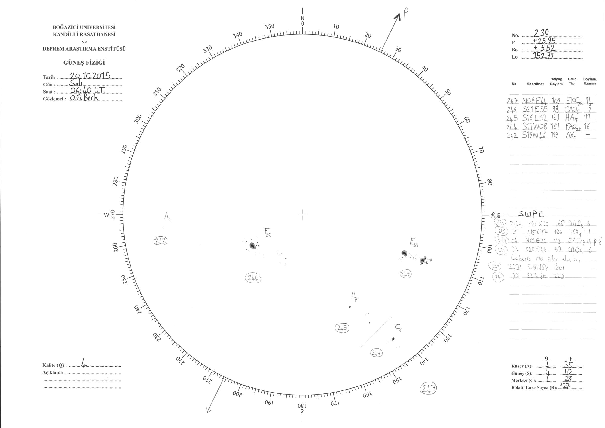 Güneş Lekesi Çizimi - 20.10.2015