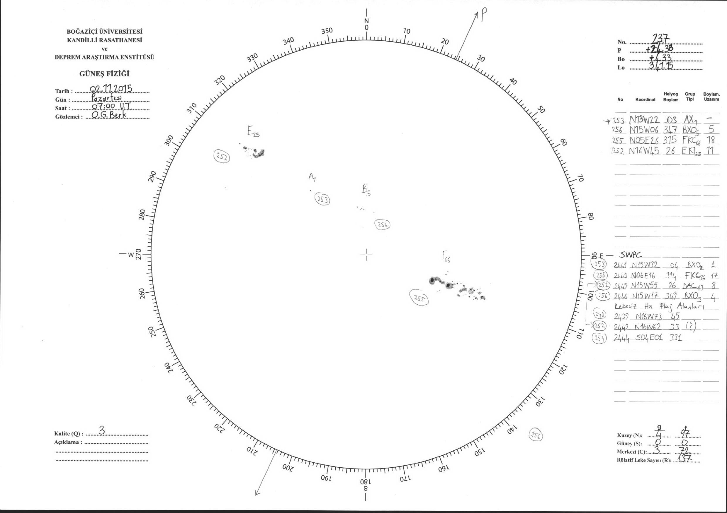 Güneş Lekesi Çizimi - 02.11.2015