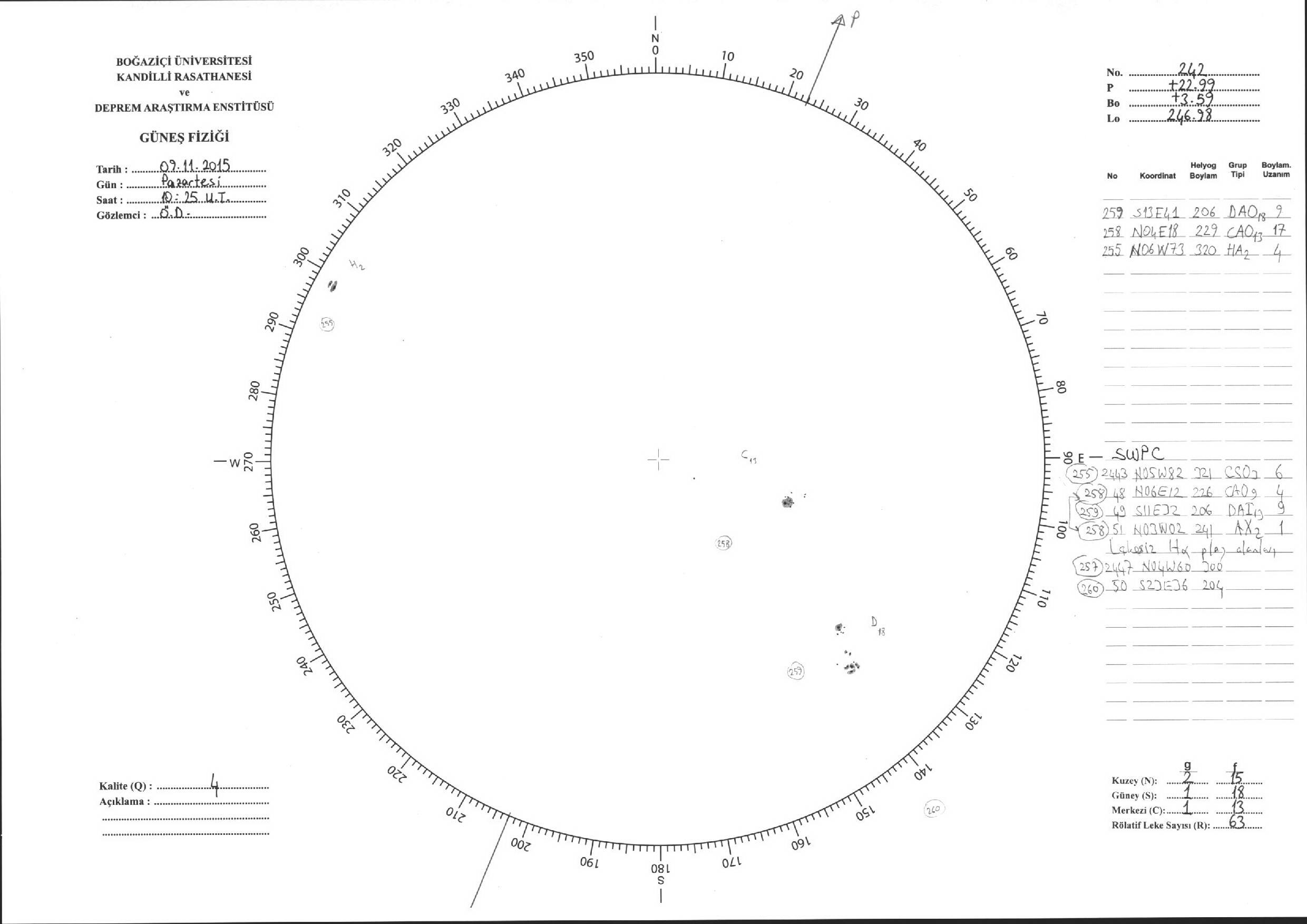 Güneş Lekesi Çizimi - 09.11.2015