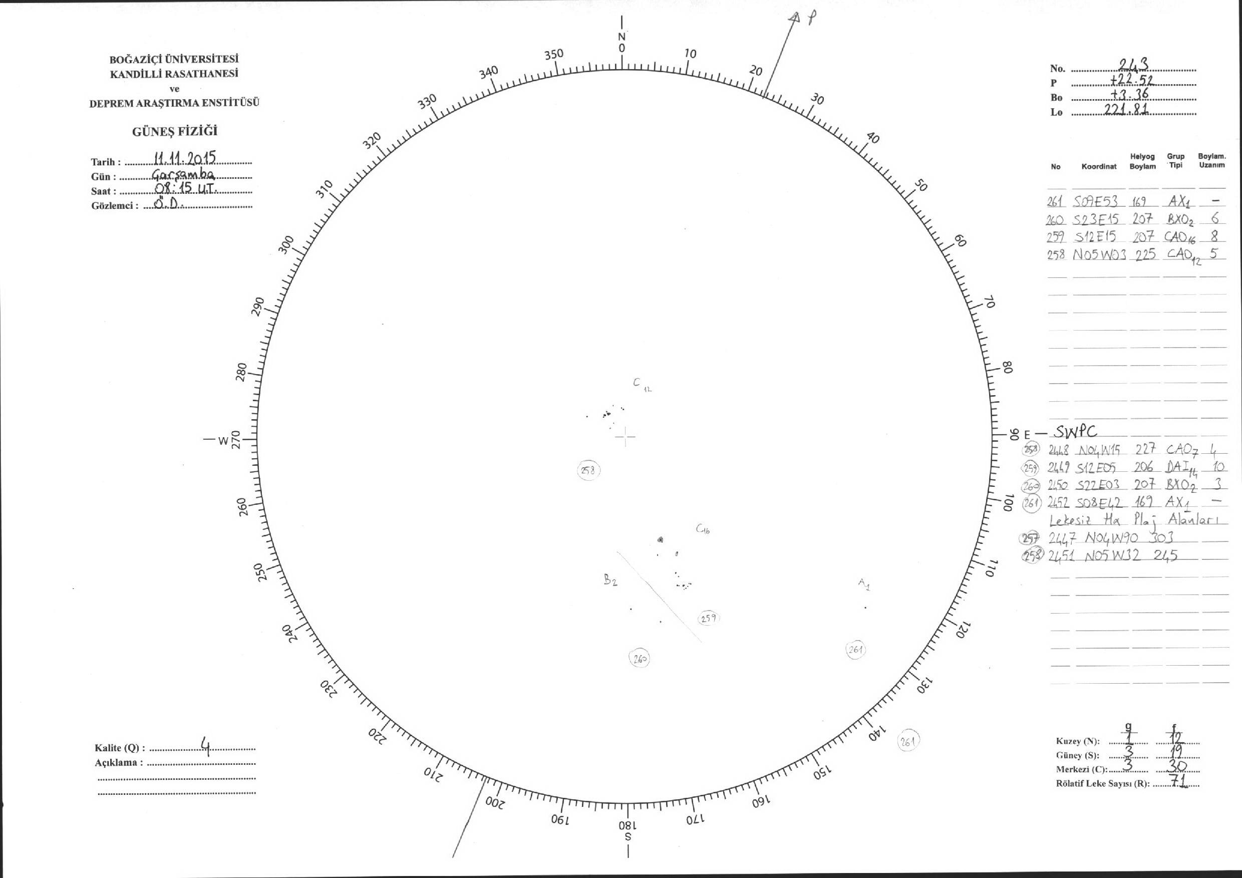 Güneş Lekesi Çizimi - 11.11.2015