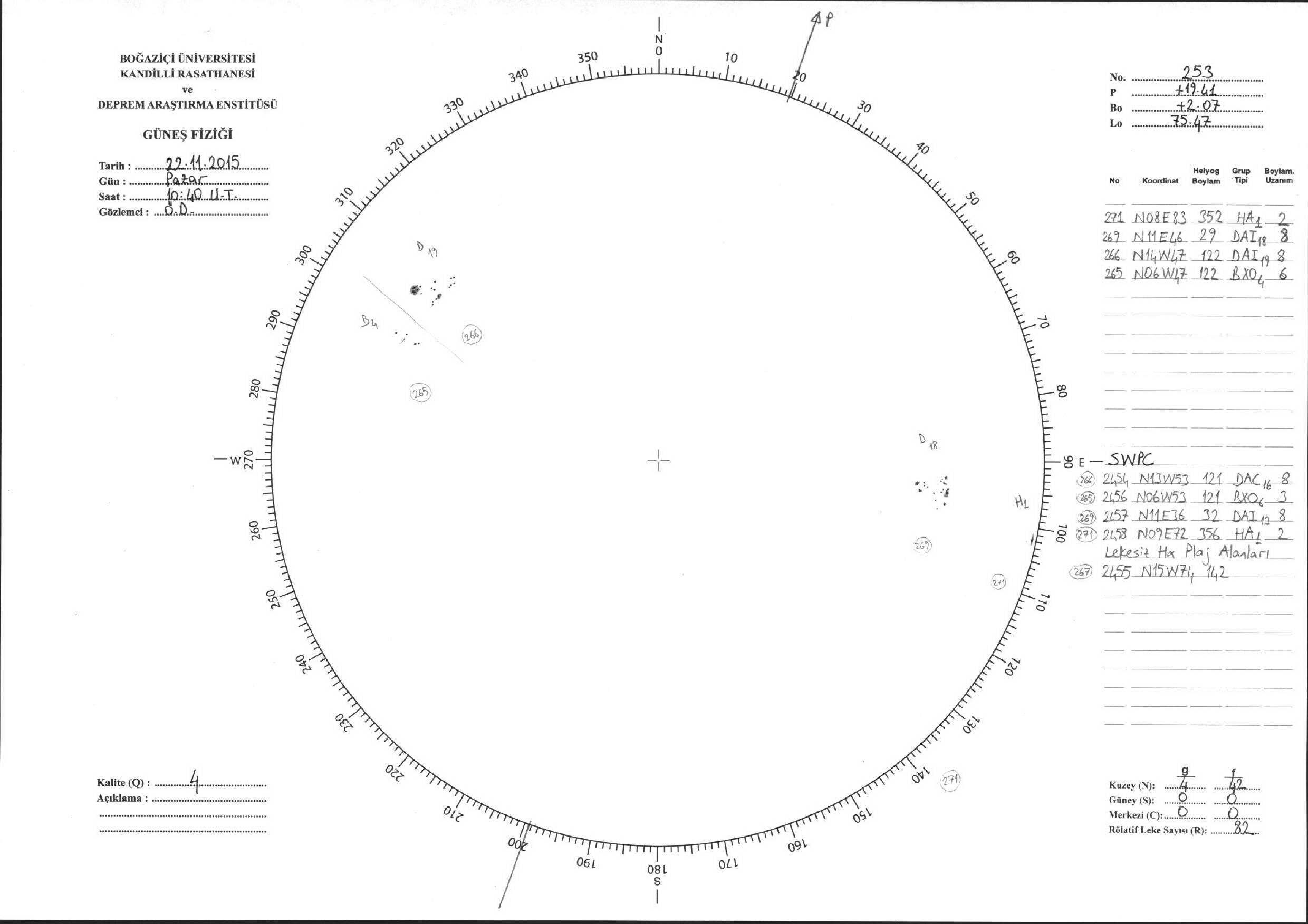 Güneş Lekesi Çizimi - 22.11.2015