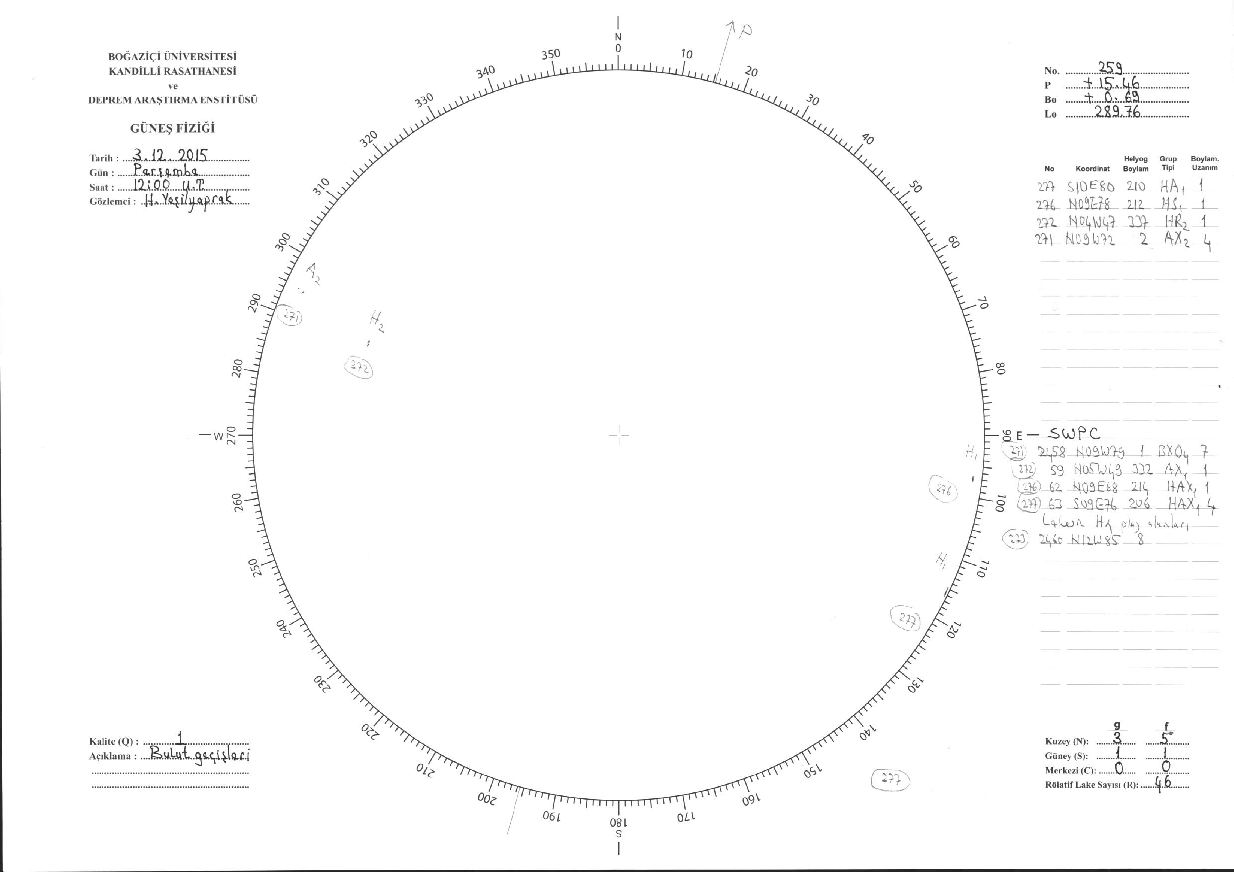 Güneş Lekesi Çizimi - 03.12.2015