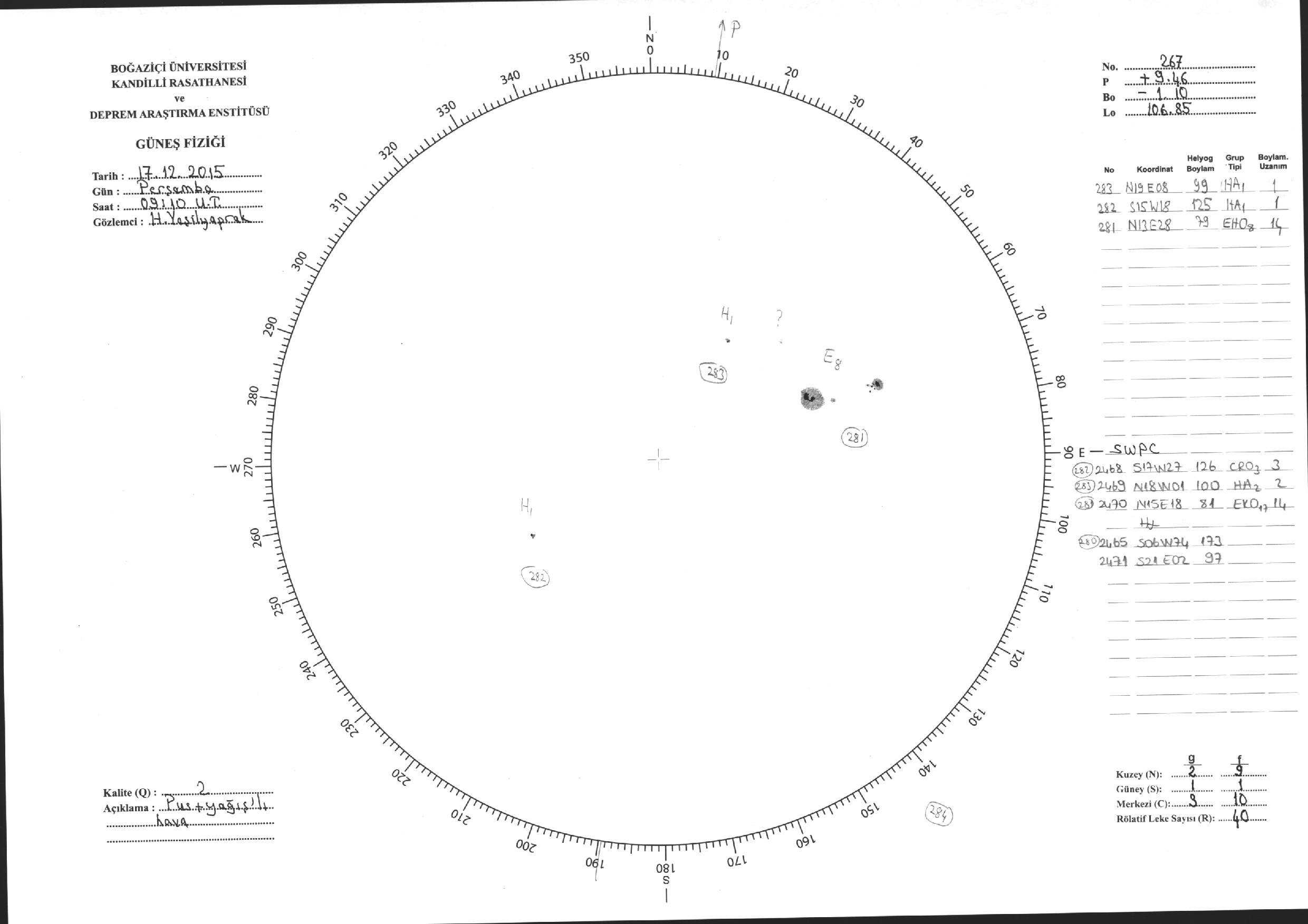 Güneş Lekesi Çizimi - 17.12.2015