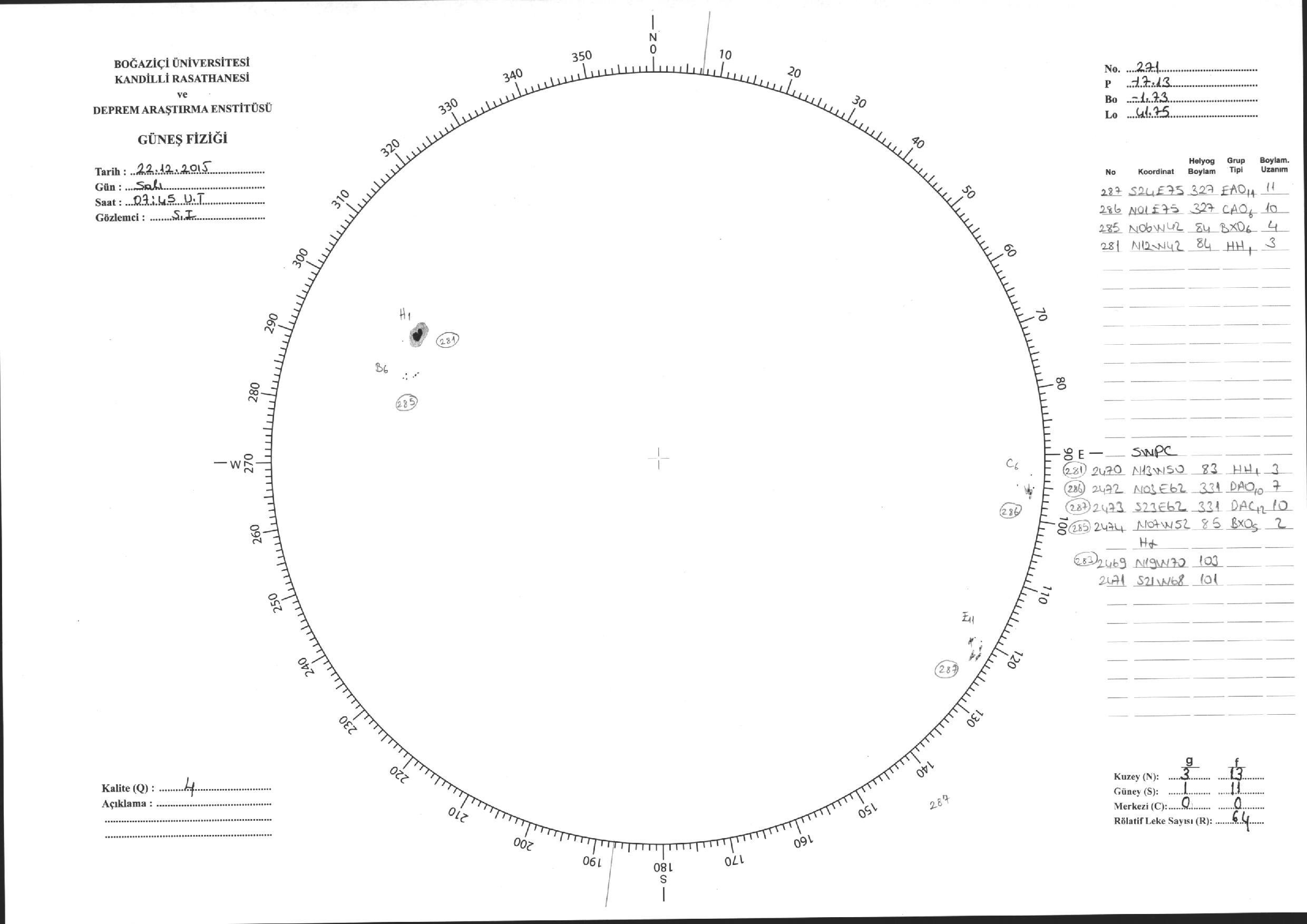 Güneş Lekesi Çizimi - 22.12.2015