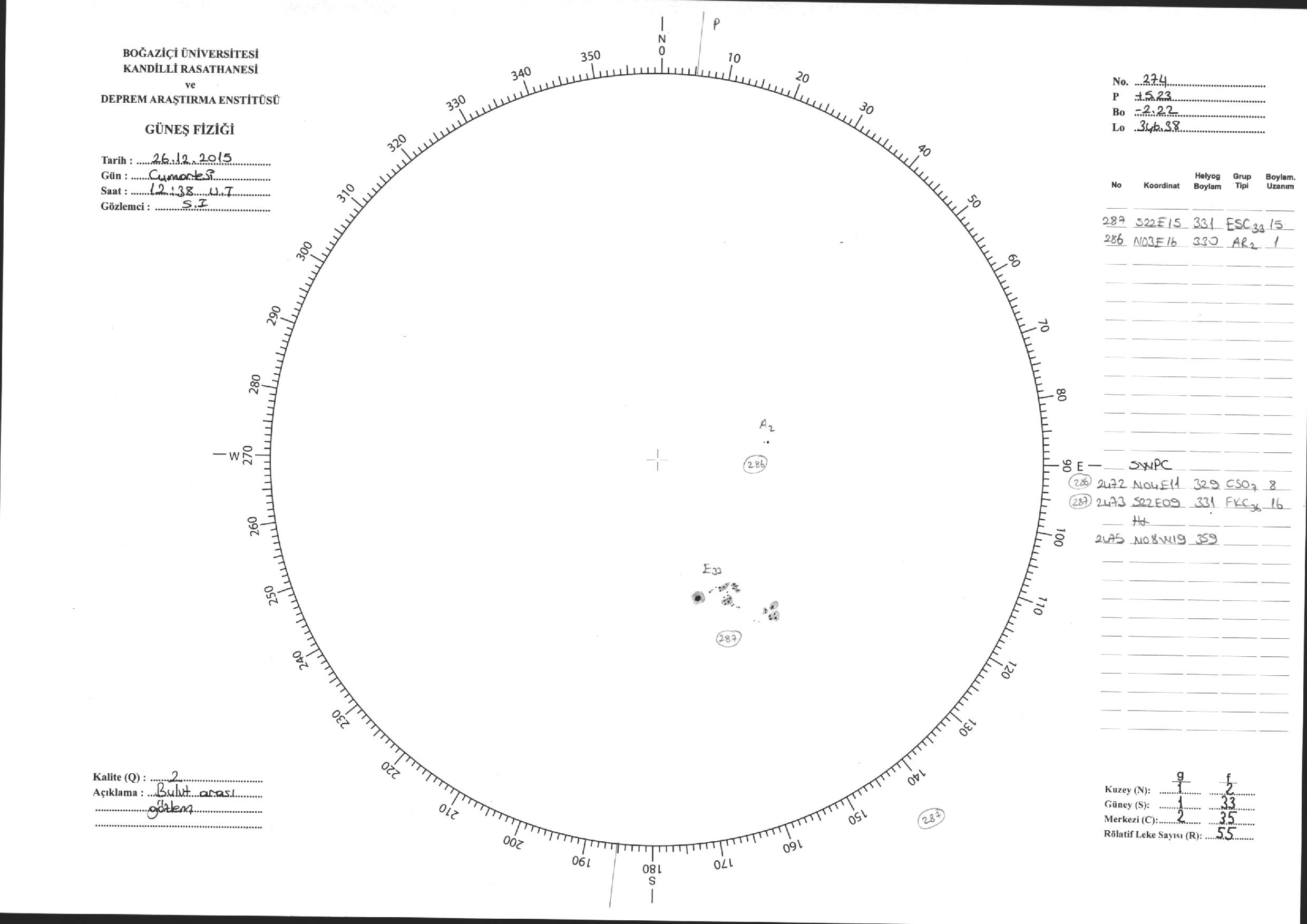 Güneş Lekesi Çizimi - 26.12.2015