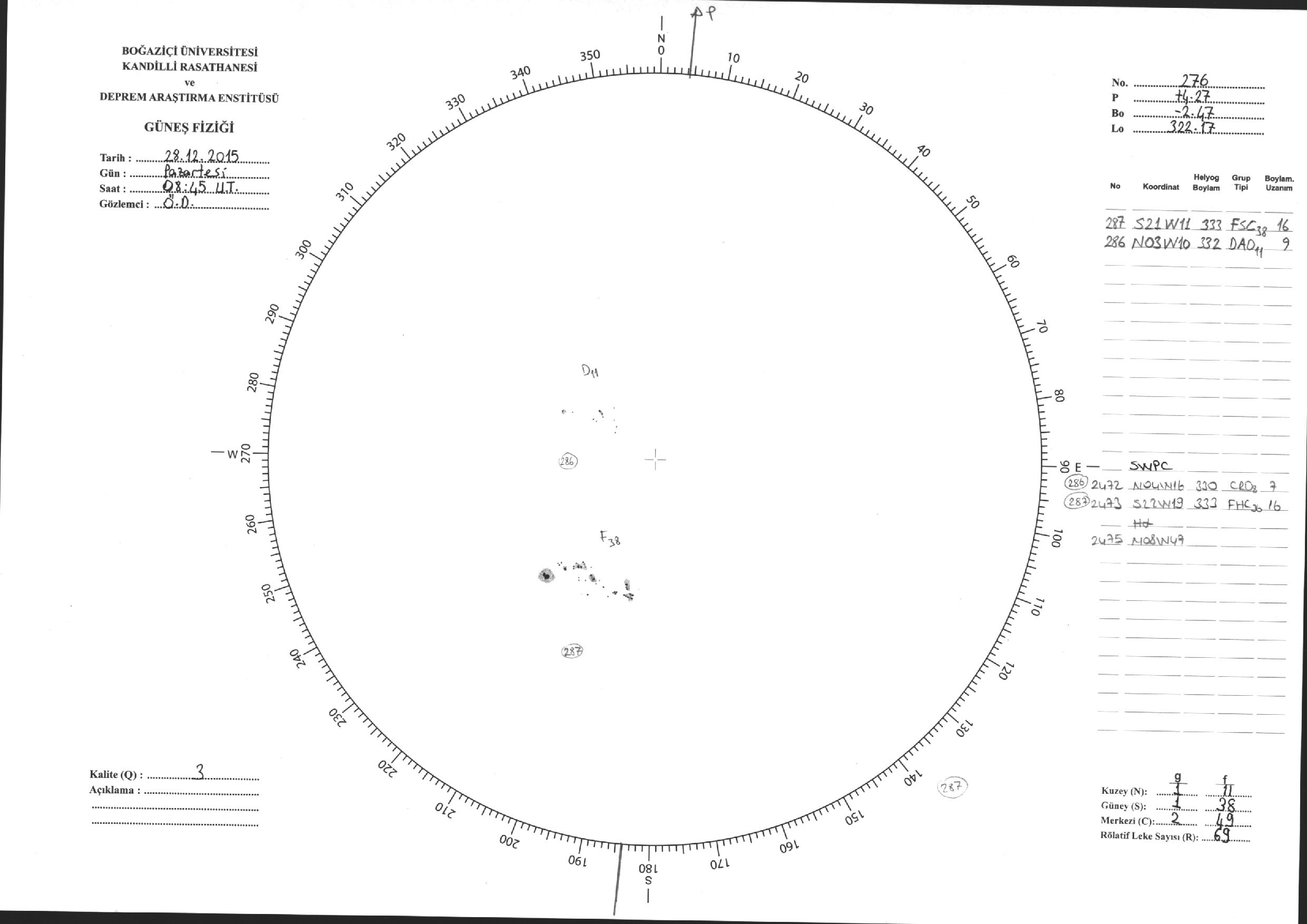 Güneş Lekesi Çizimi - 28.12.2015