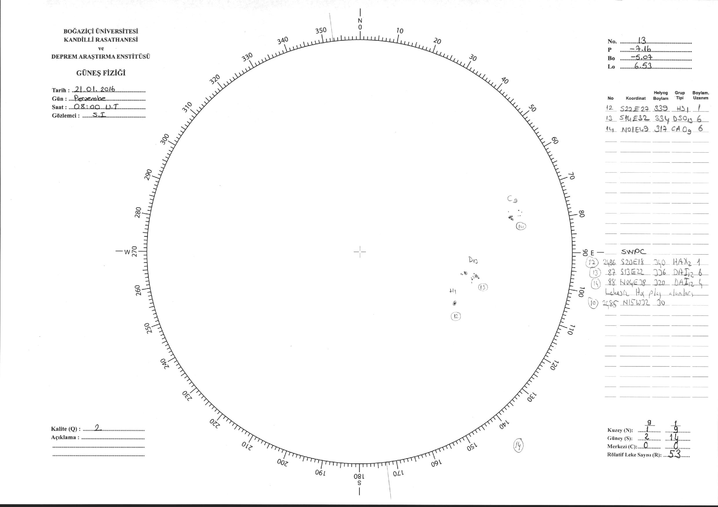 Güneş Lekesi Çizimi - 21.01.2016