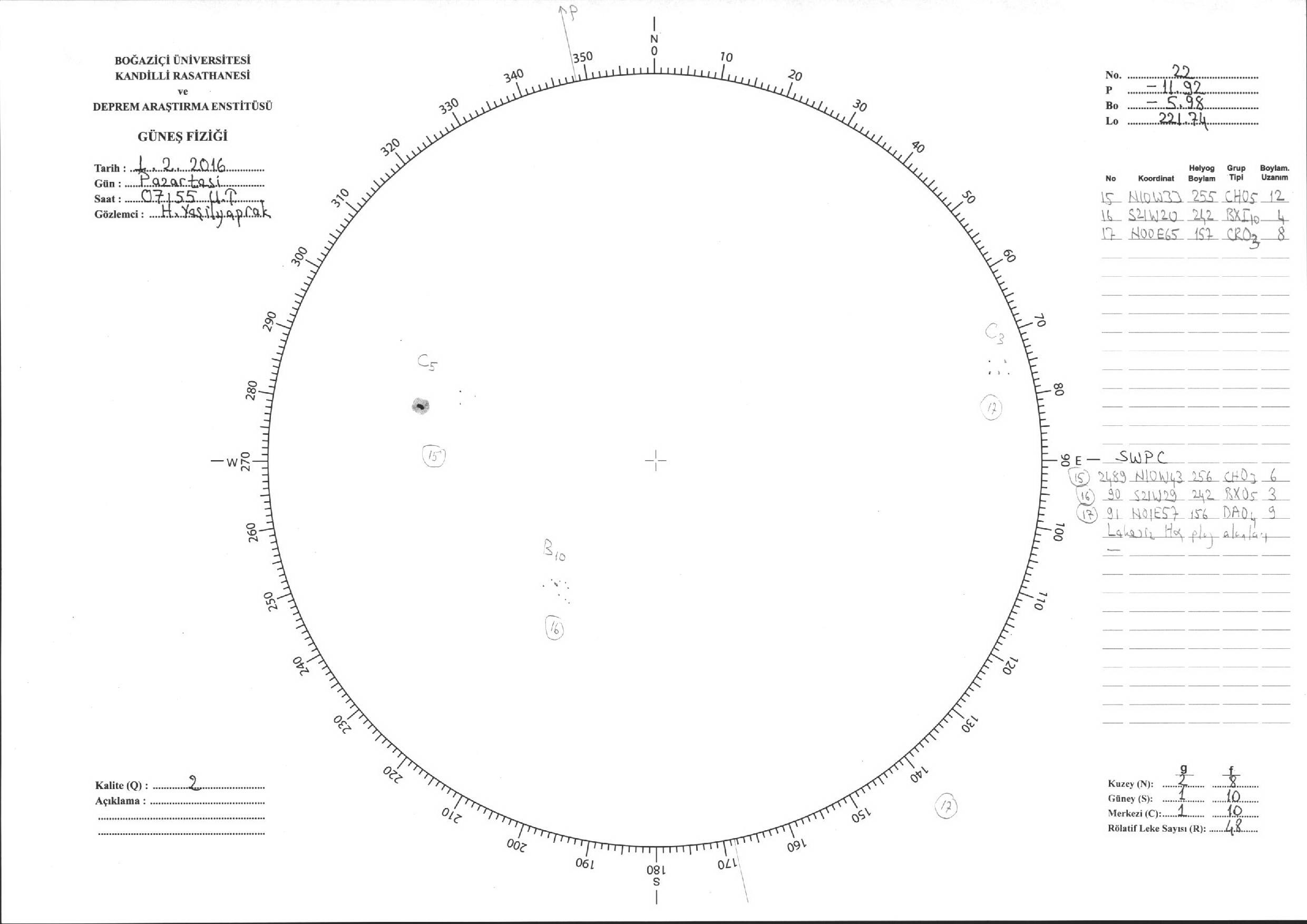 Güneş Lekesi Çizimi - 01.02.2016