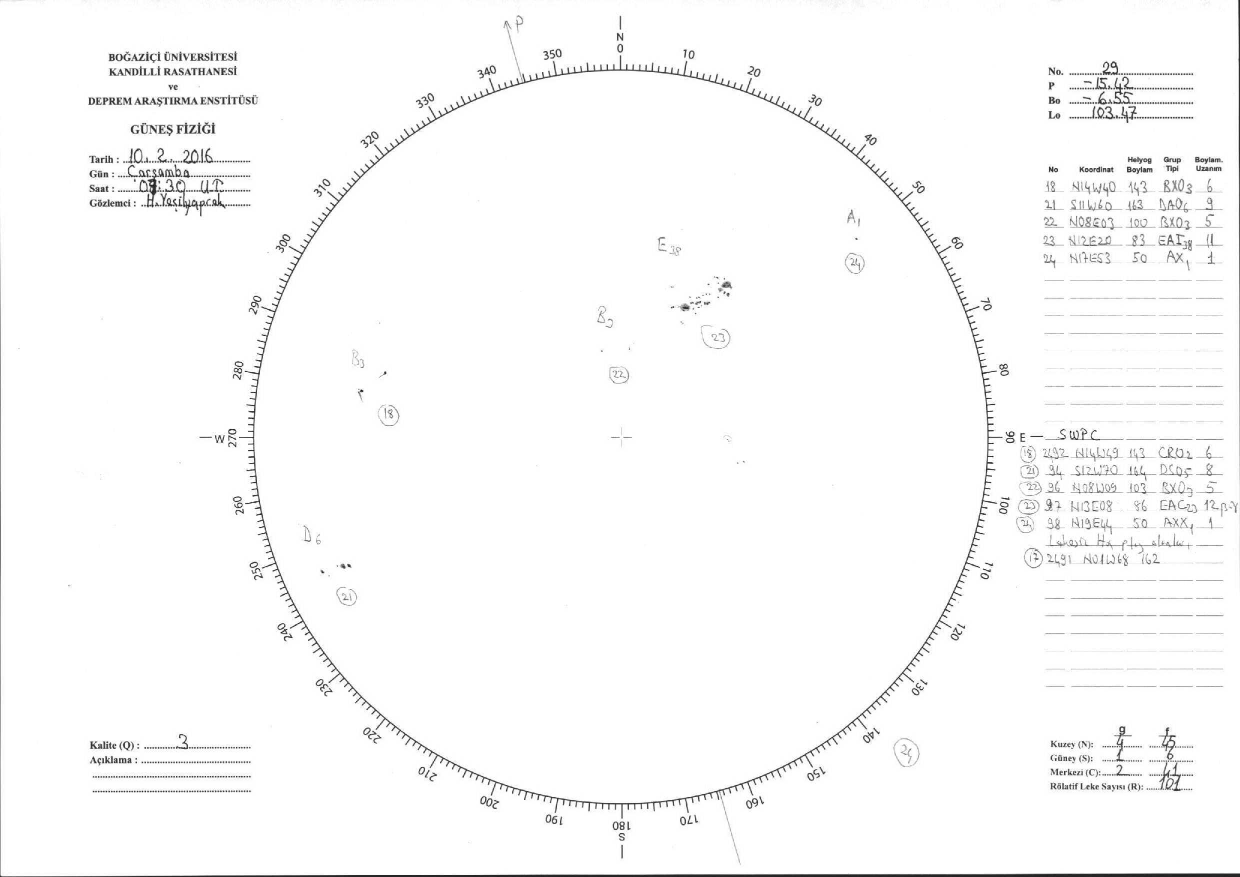Güneş Lekesi Çizimi - 10.02.2016